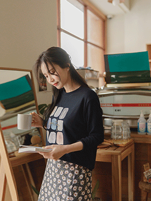 요즘 장마철이라 우울하고 자꾸만 가라앉는 것 같습니다. 색감이 밝아서 좋고 디자인이 산뜻해서 편하게 입고 여유를 가질 수 있을 듯합니다.프리사이즈라 다소 불안한 마음을 갖고 주문을 했는데, 다행히 어울리는듯 합니다. 감사합니다.