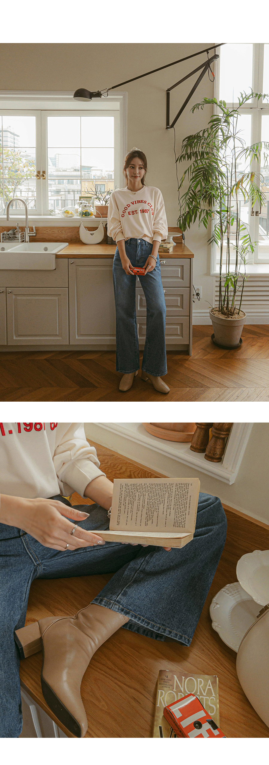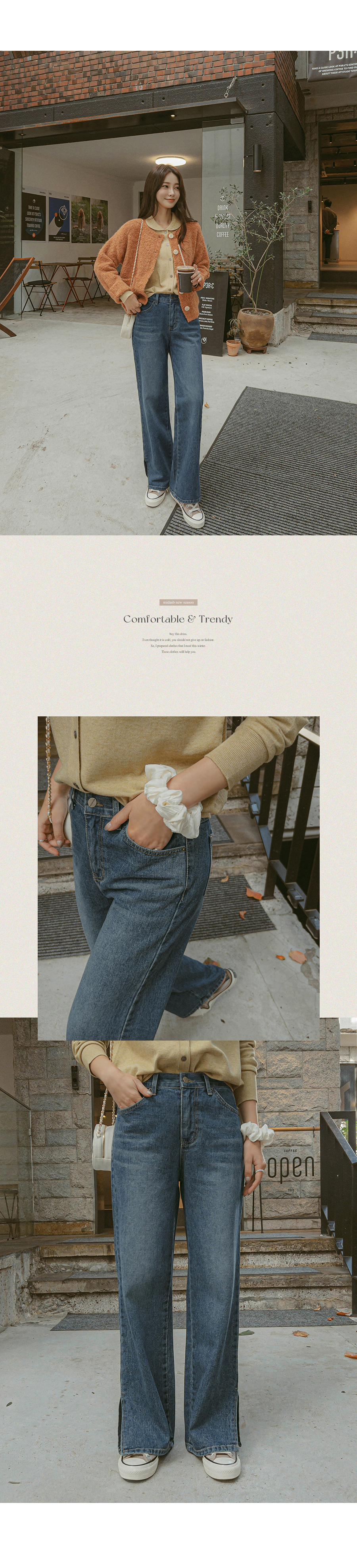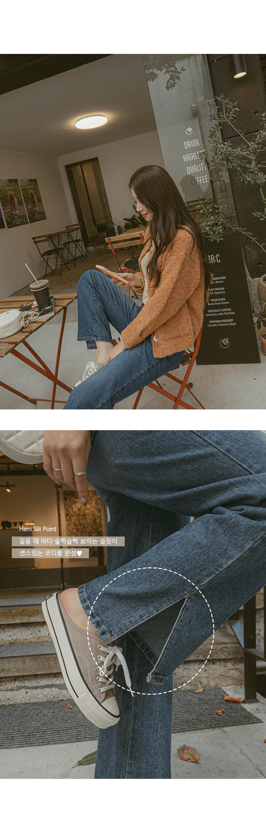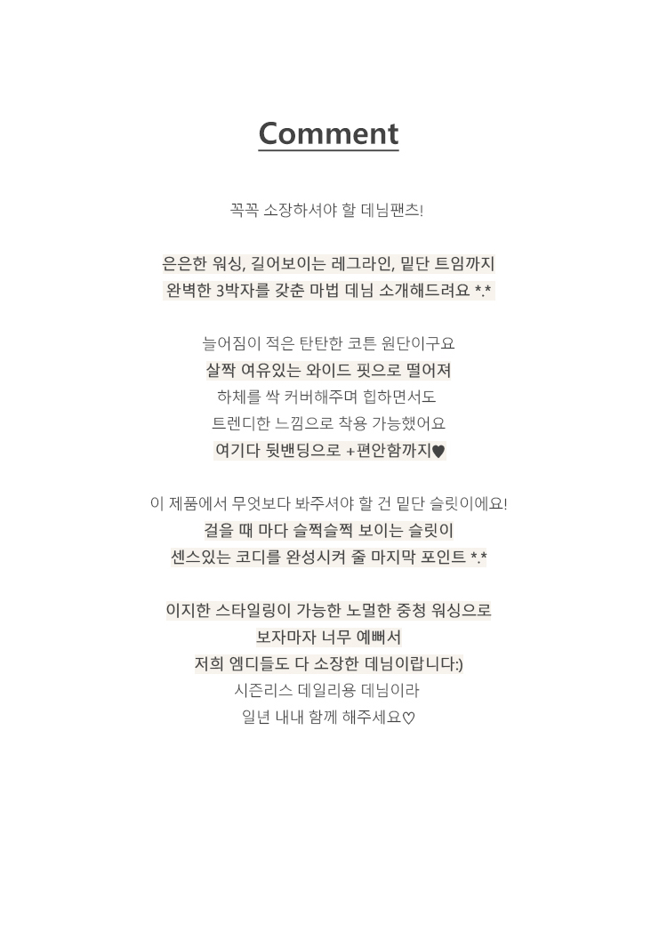 색상. 질감 모두 좋습니다. 품도 적당히 잘 맞구요. 플랫슈즈나 운동화를 주로 신는 제겐 길어서 수선 필요하네요. 평균적으로 살짝 길어보여요