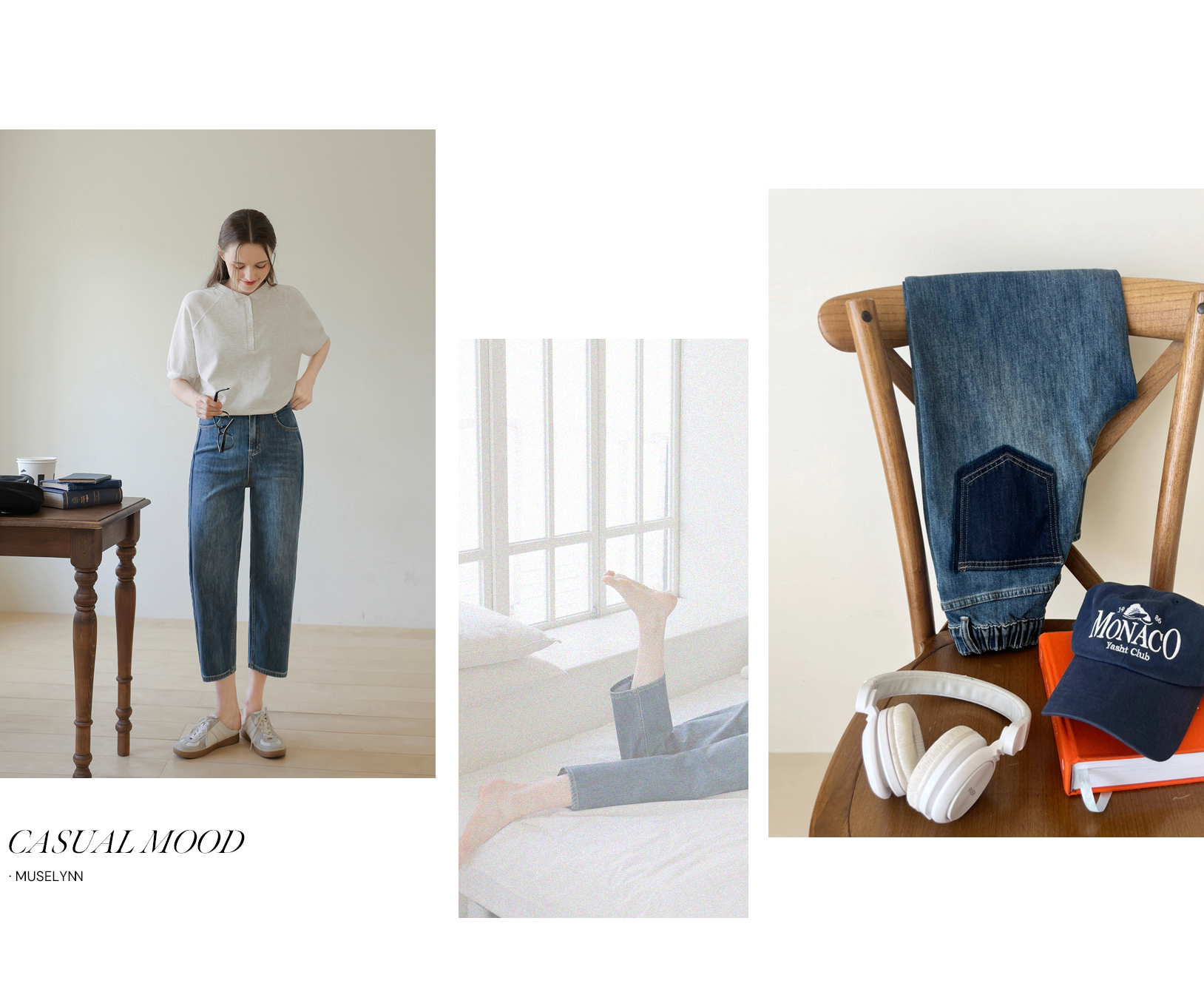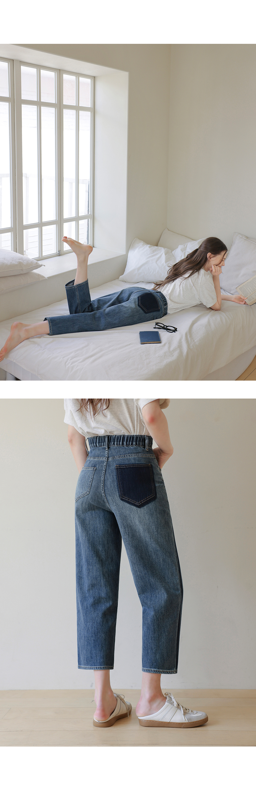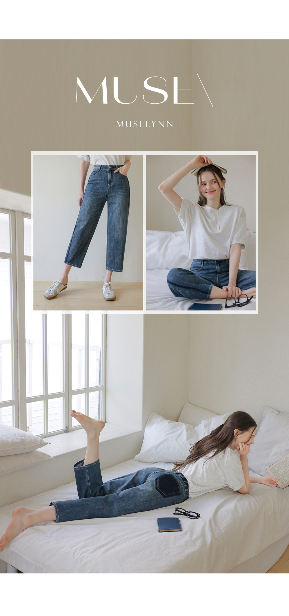 [뮤즈린] 위시드 포켓 배색 배기핏 데님팬츠 [밴딩] [뮤즈린] 위시드 포켓 배색 배기핏 데님팬츠 [밴딩] [뮤즈린] 위시드 포켓 배색 배기핏 데님팬츠 [밴딩]
