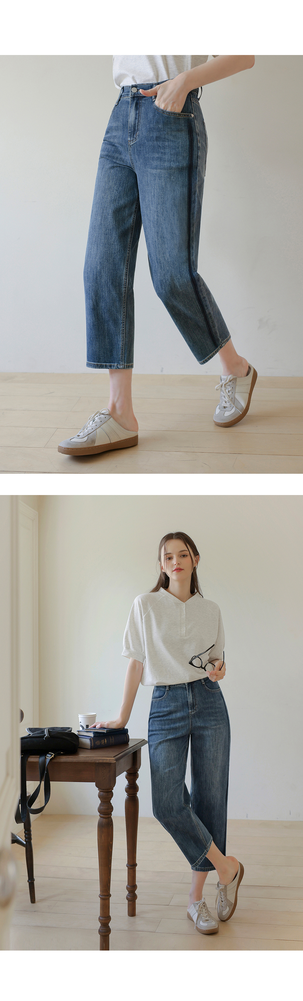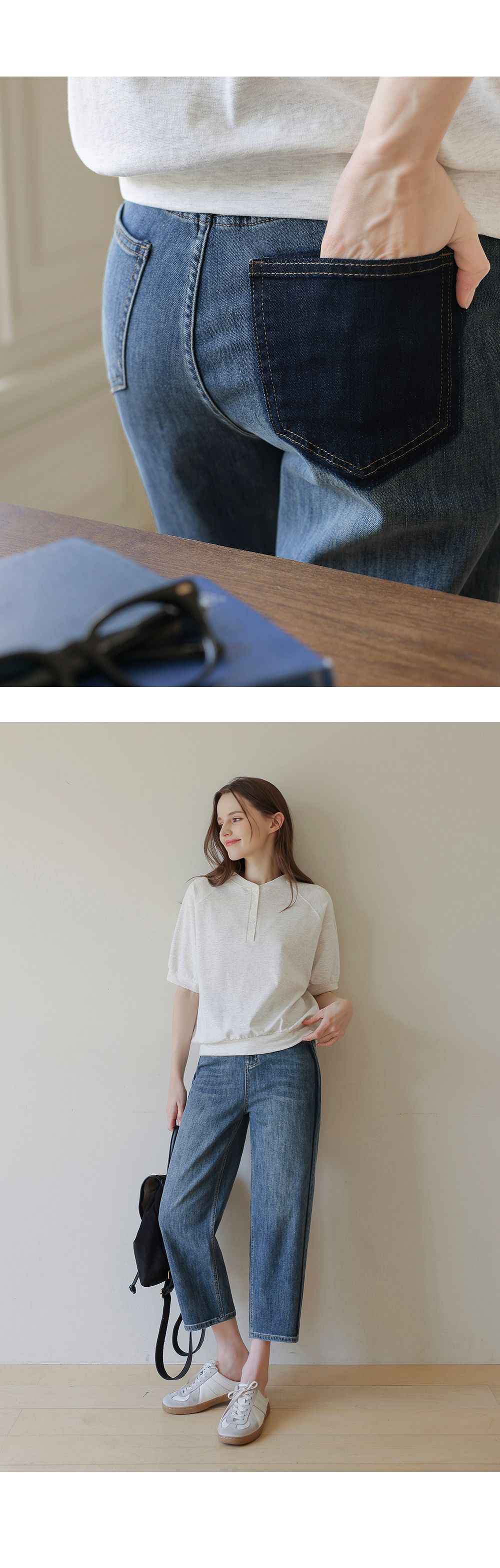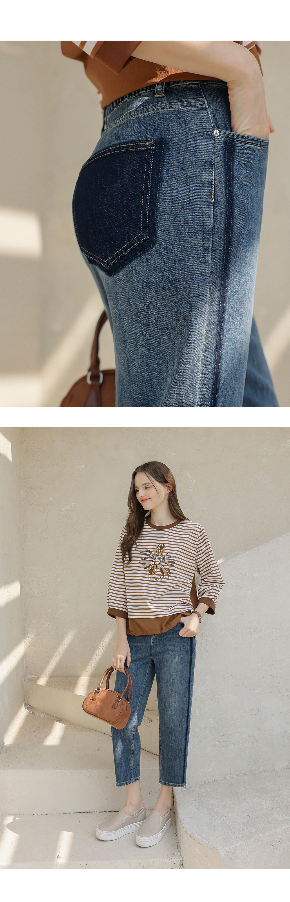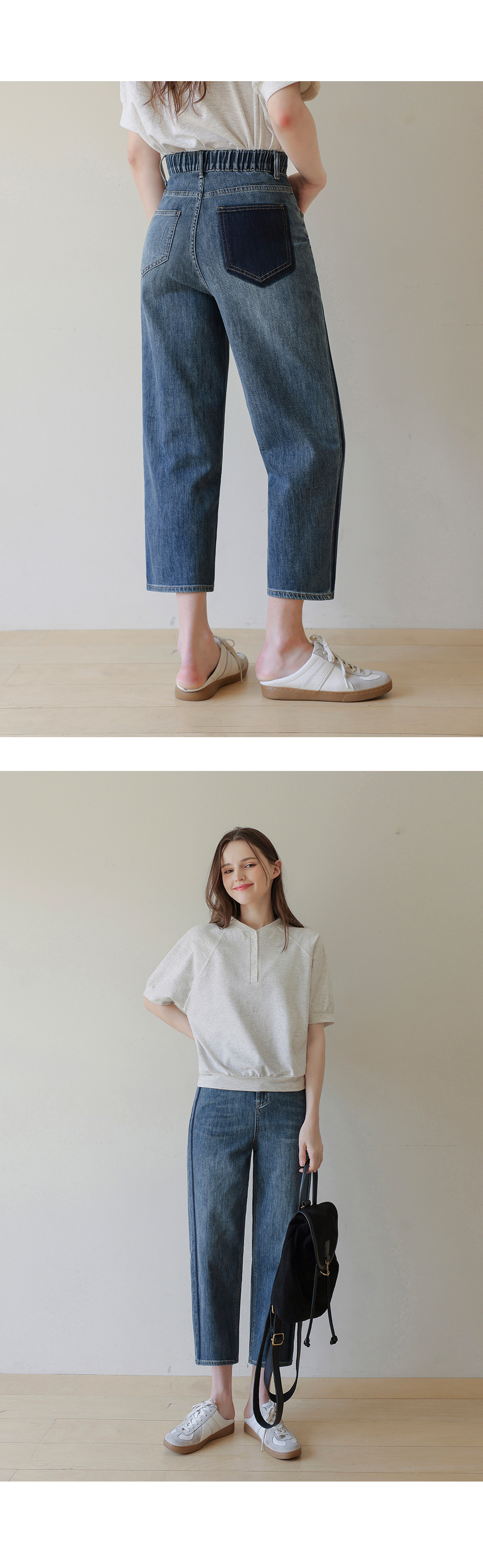 [뮤즈린] 위시드 포켓 배색 배기핏 데님팬츠 [밴딩] [뮤즈린] 위시드 포켓 배색 배기핏 데님팬츠 [밴딩] [뮤즈린] 위시드 포켓 배색 배기핏 데님팬츠 [밴딩]