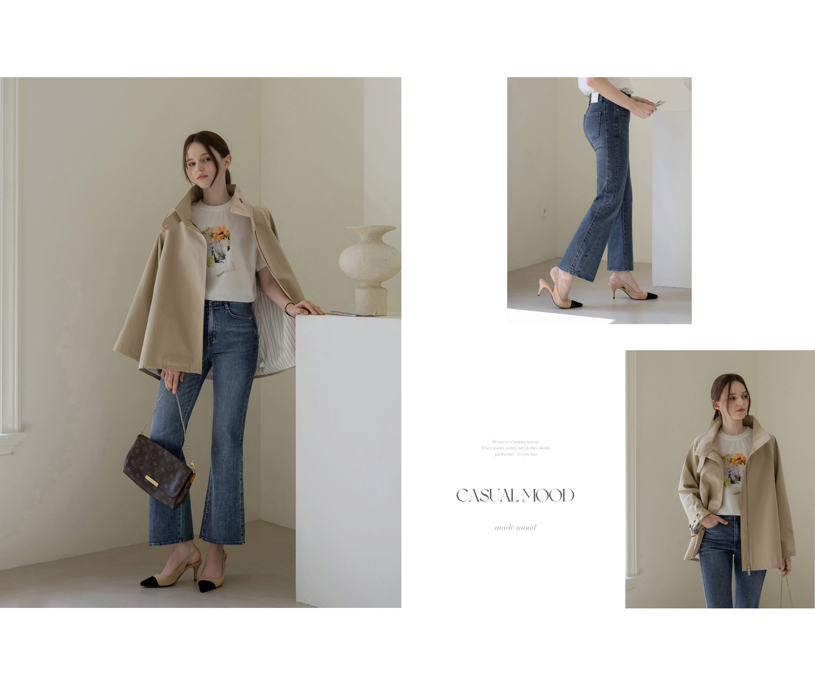 세이지 절개 부츠컷 데님팬츠 [밴딩]