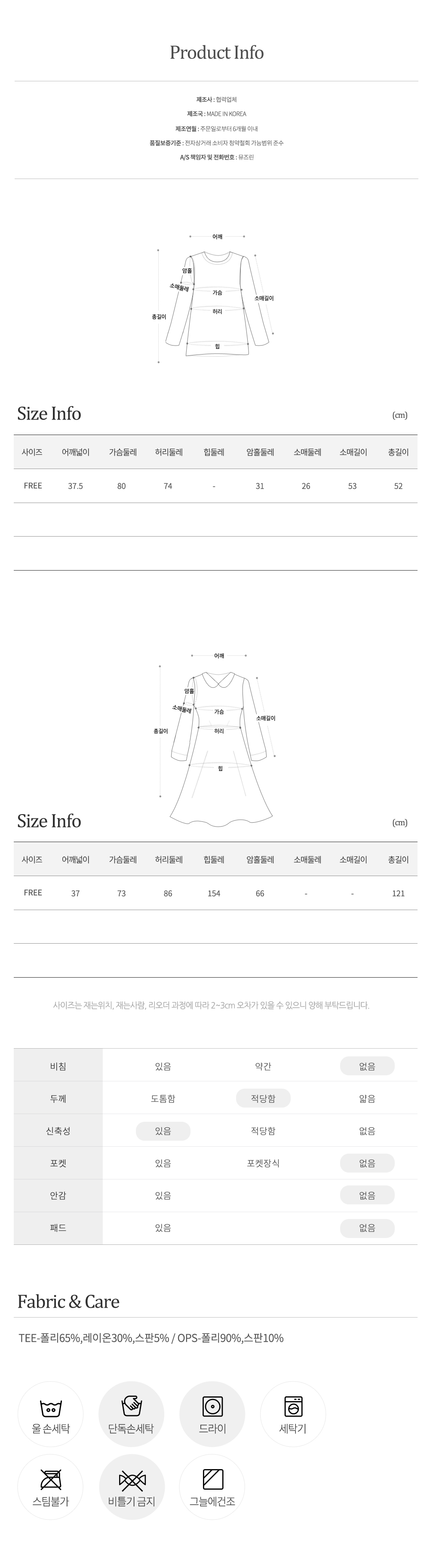 교환/반품 불가- 착용 또는 세탁한 상품