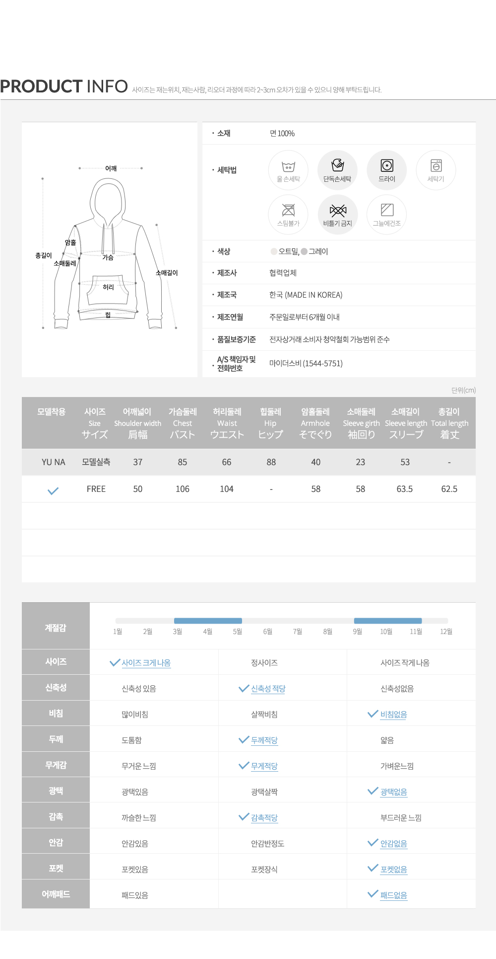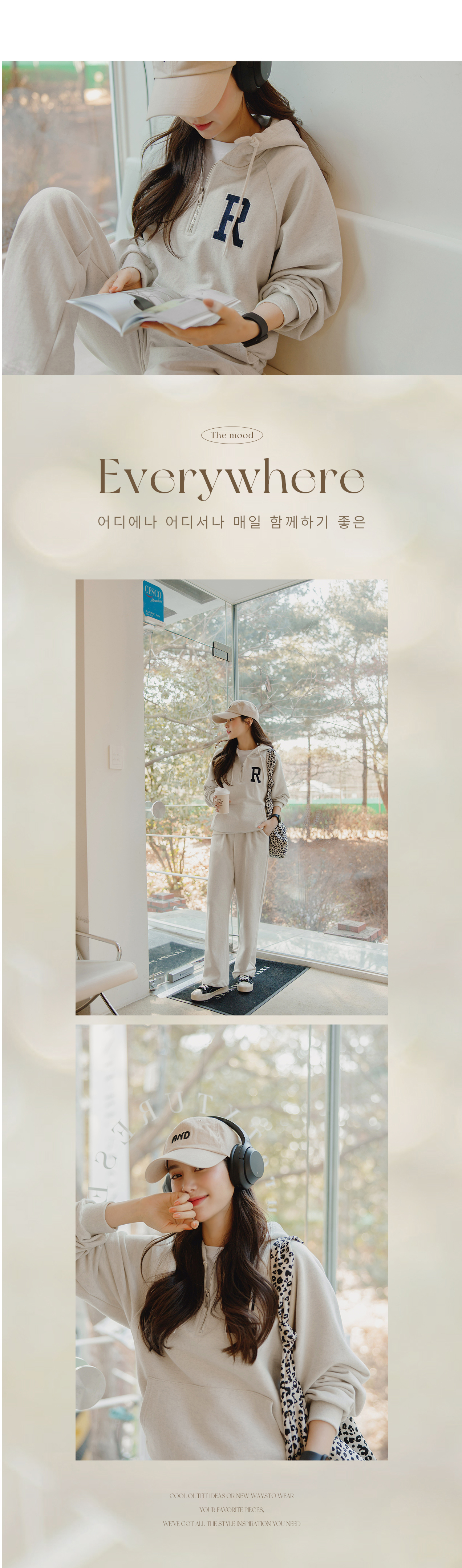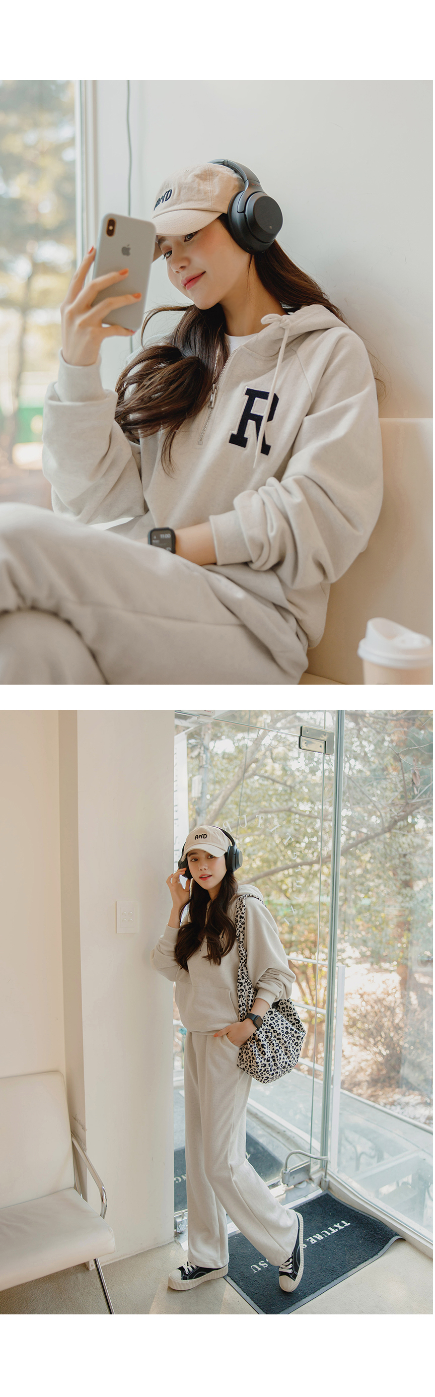 지금 같은 환절기에 입기에 딱 좋은 두께감이에요!색깔도 너무 예쁘고 후드 디테일과 부츠컷 스타일이 예뻐서 꾸안꾸 스타일로 딱입니당