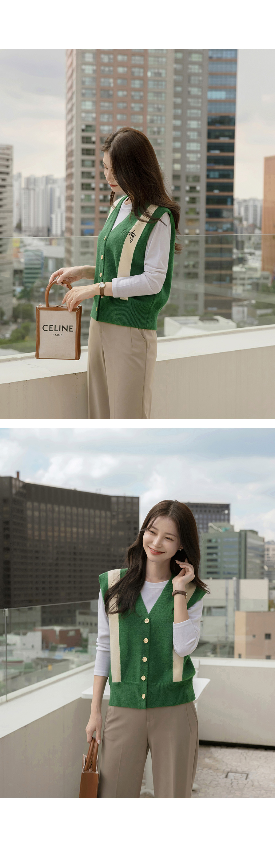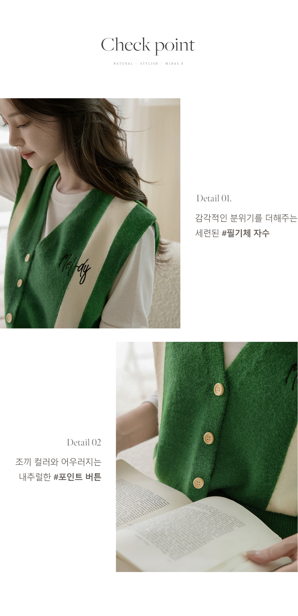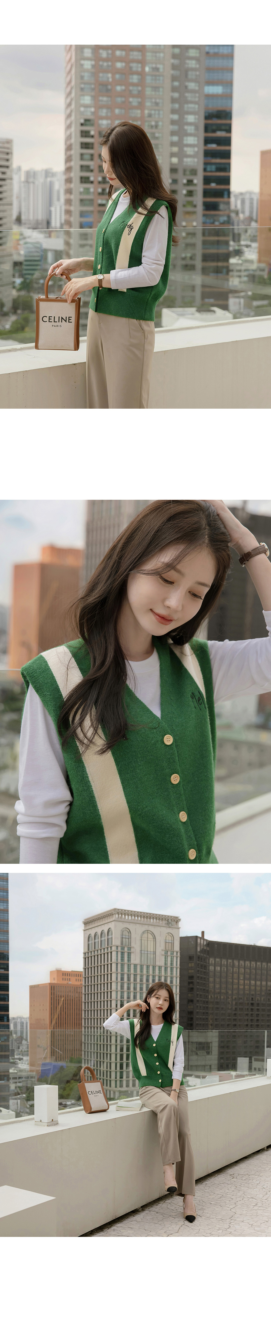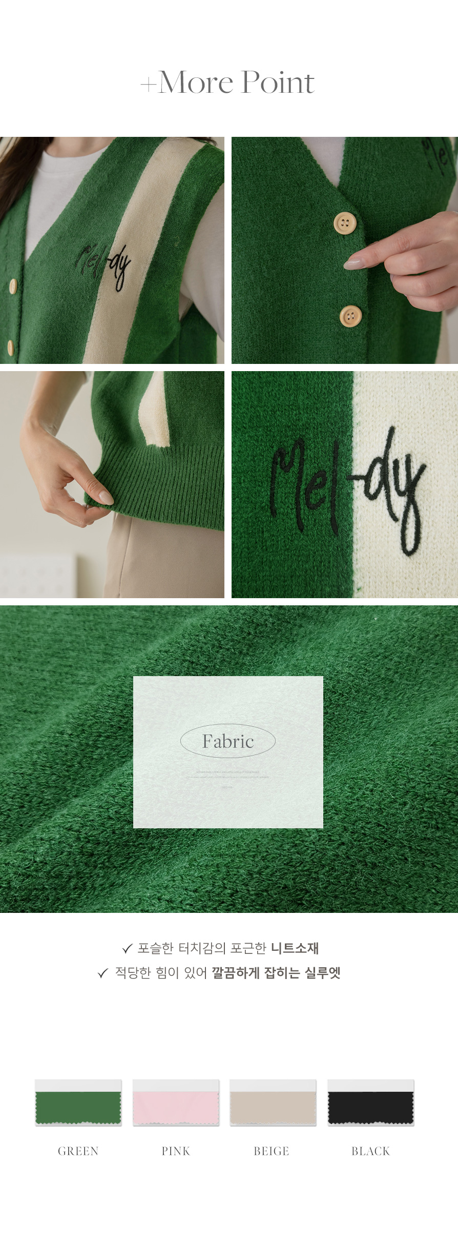 멜로디 자수 배색 니트 조끼
