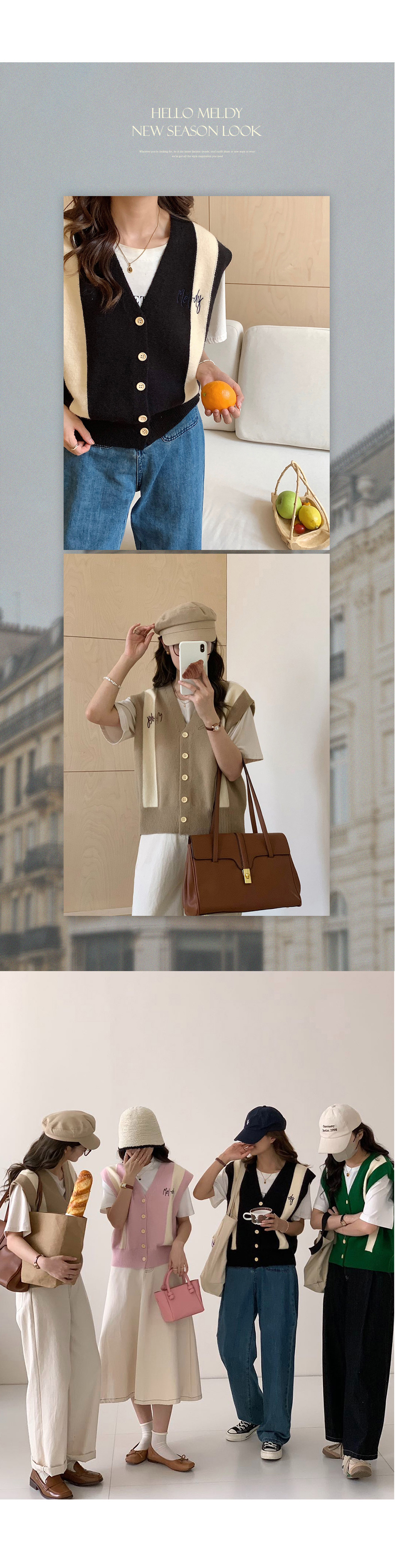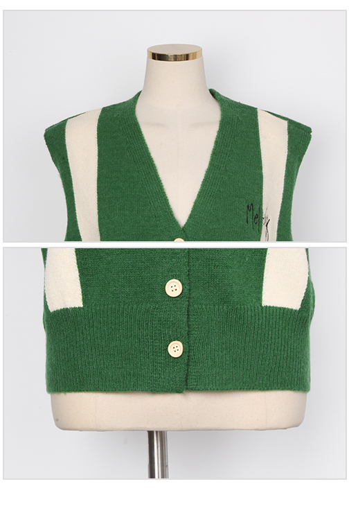 멜로디 자수 배색 니트 조끼 멜로디 자수 배색 니트 조끼 멜로디 자수 배색 니트 조끼