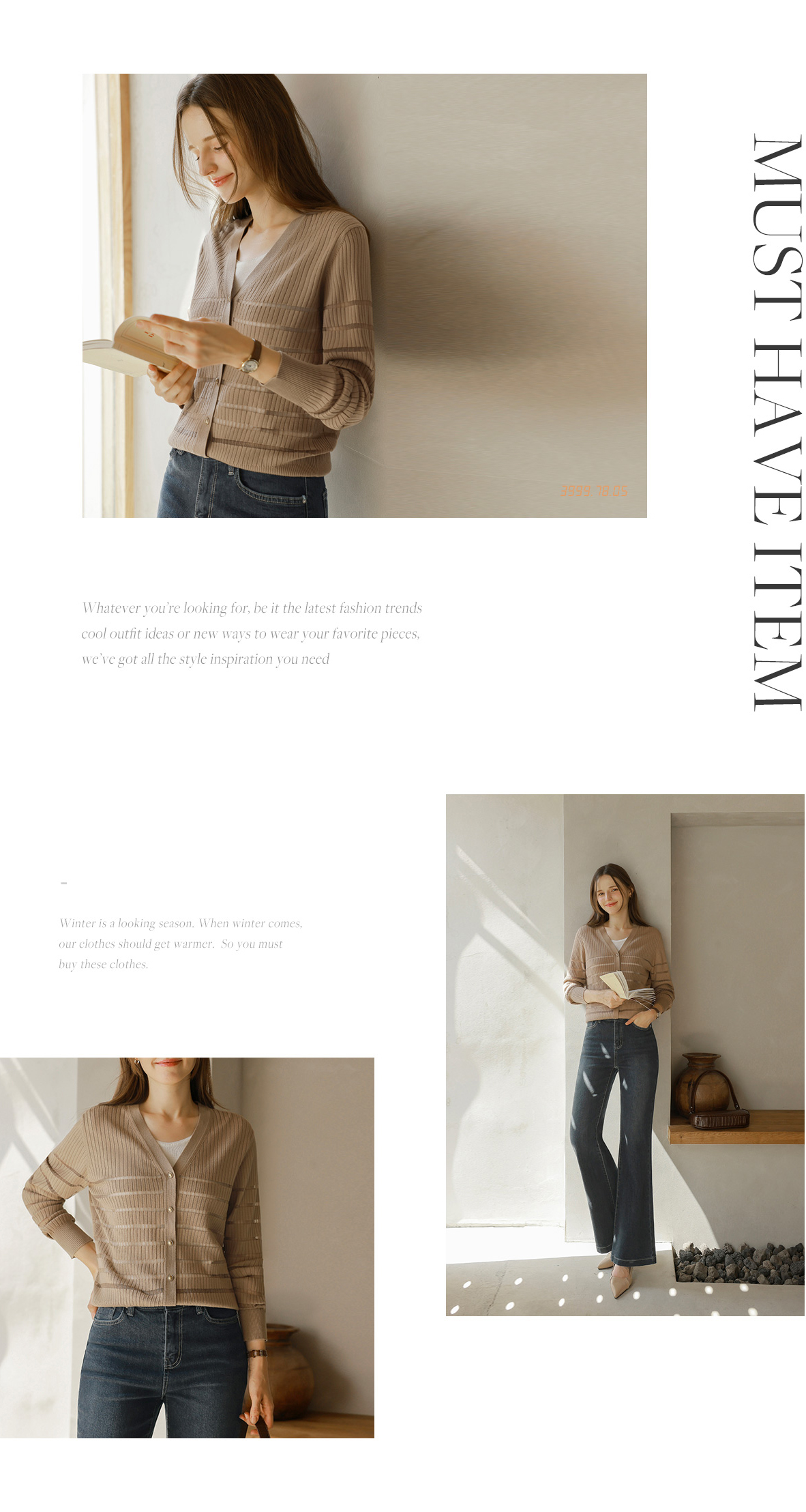 [뮤즈린] 시모 골드버튼 스트라이프 가디건