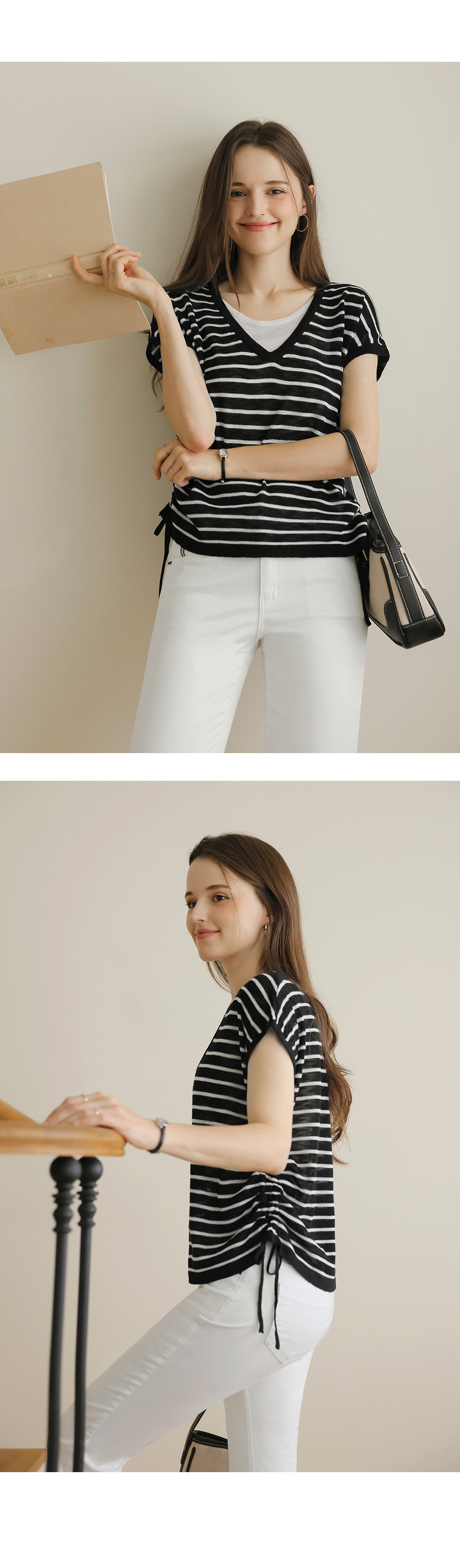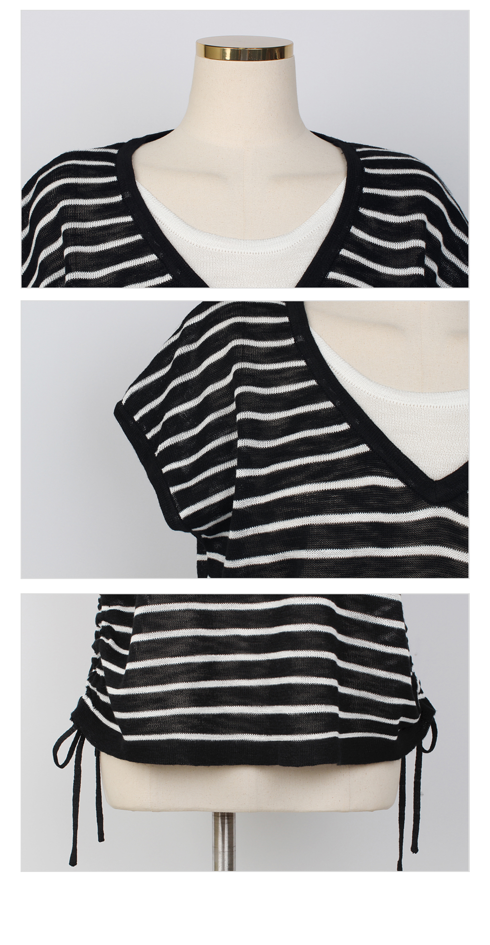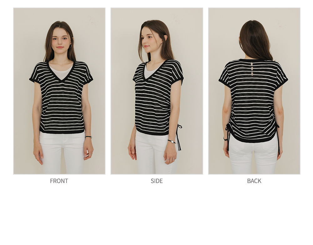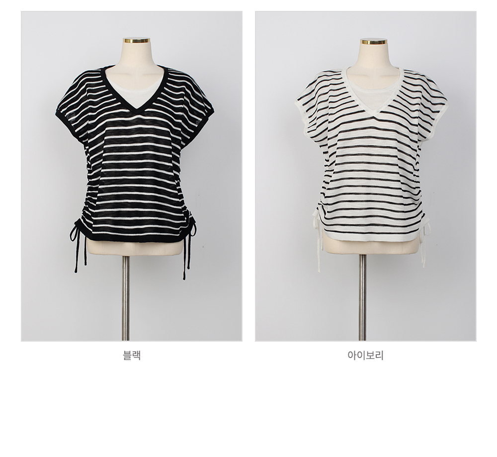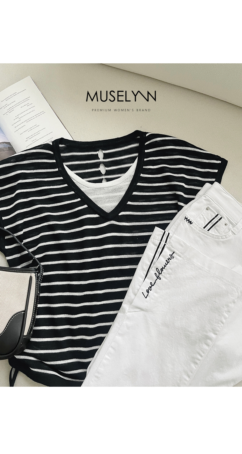 [뮤즈린] 톰즈 스트라이프 셔링 캡소매 니트