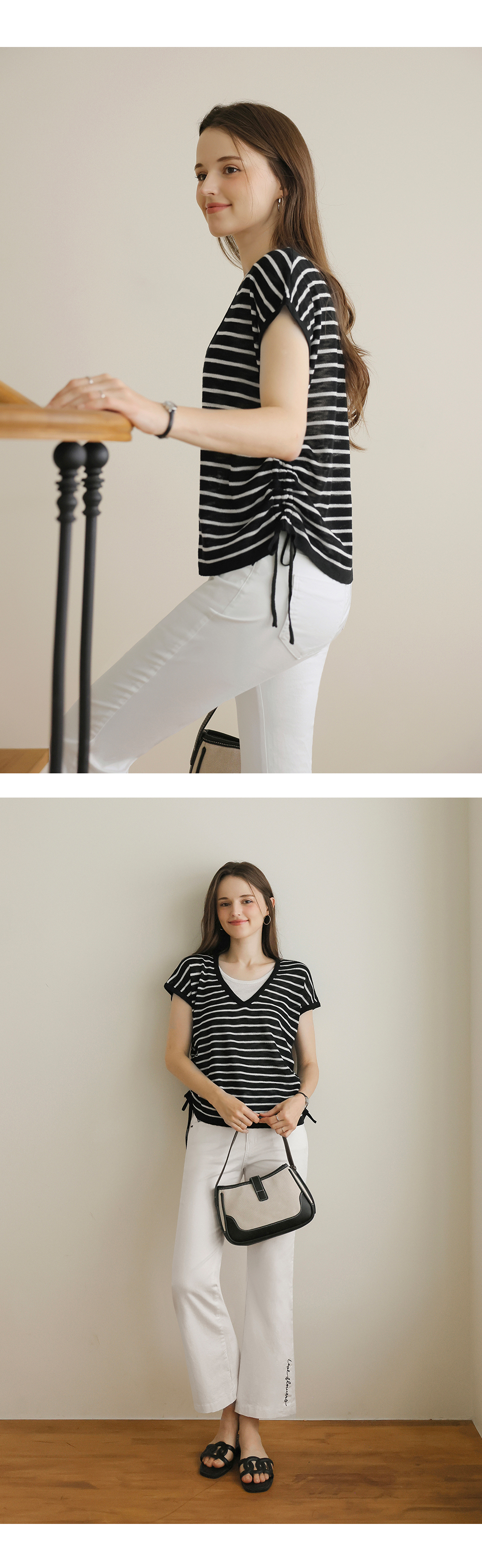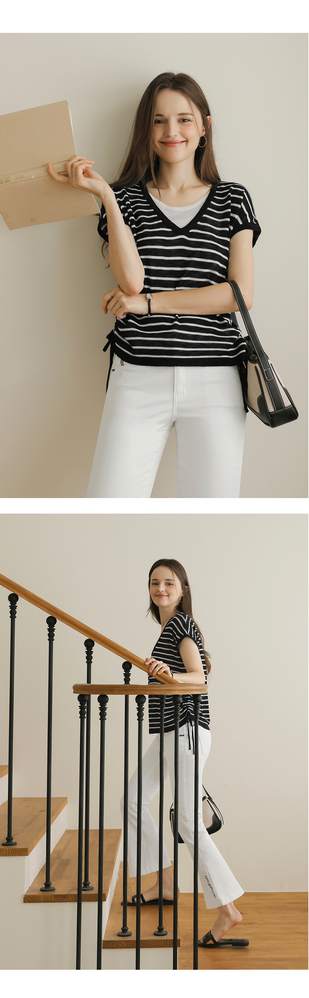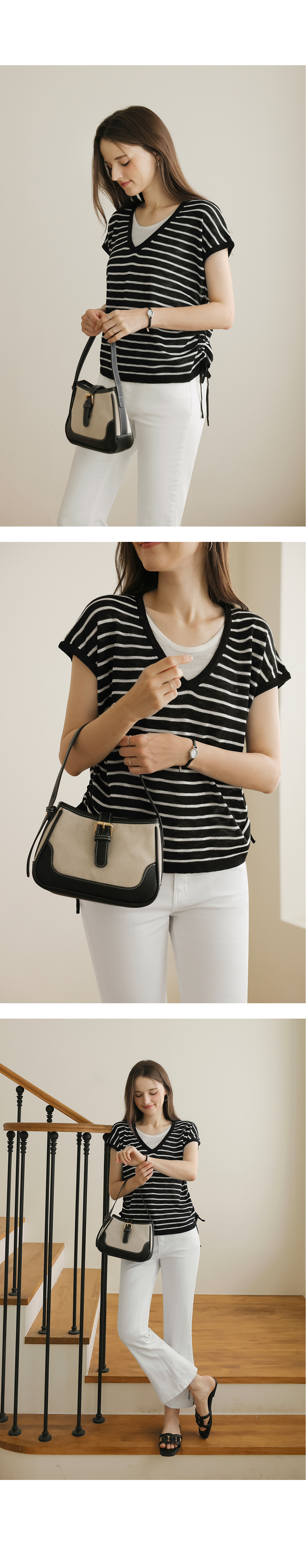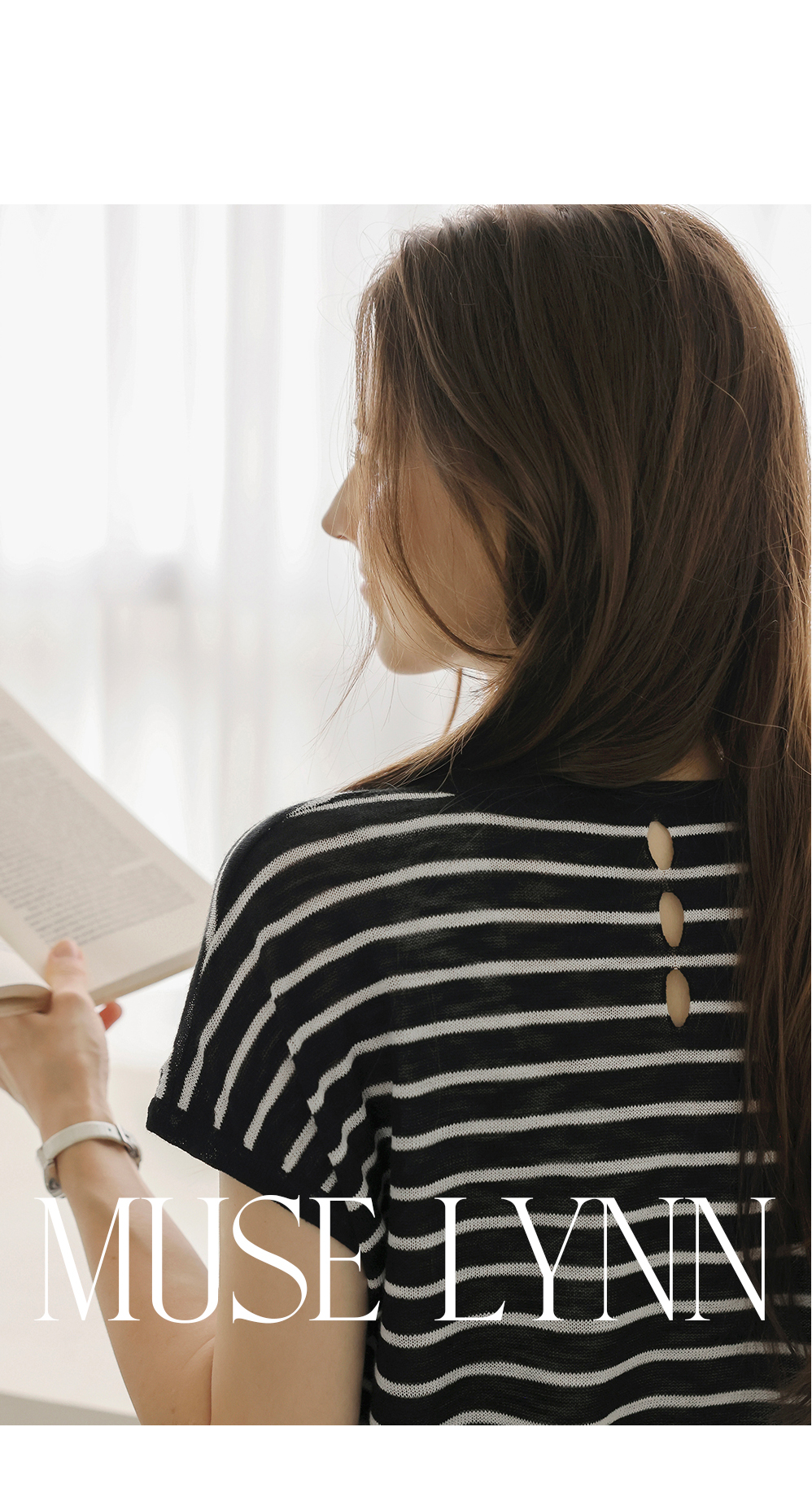 [뮤즈린] 톰즈 스트라이프 셔링 캡소매 니트