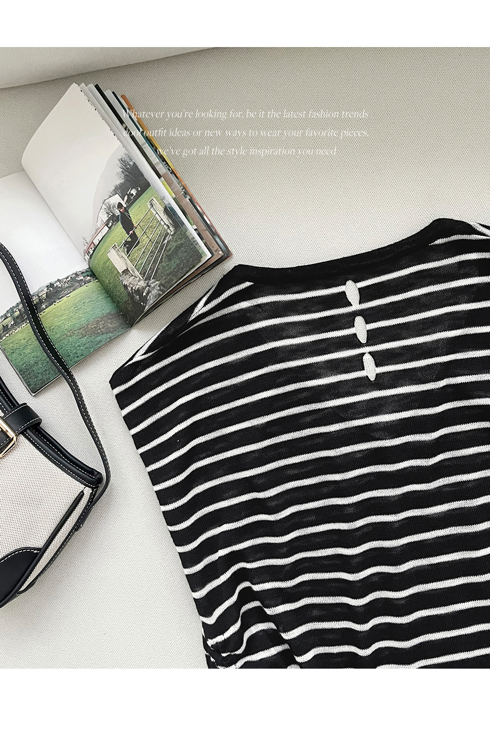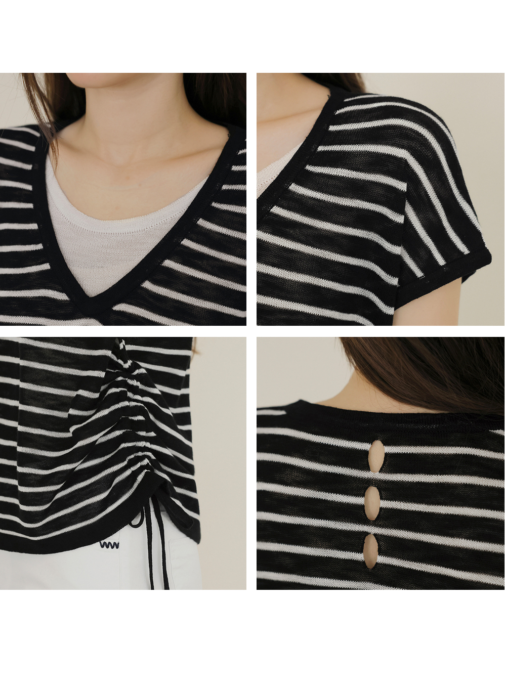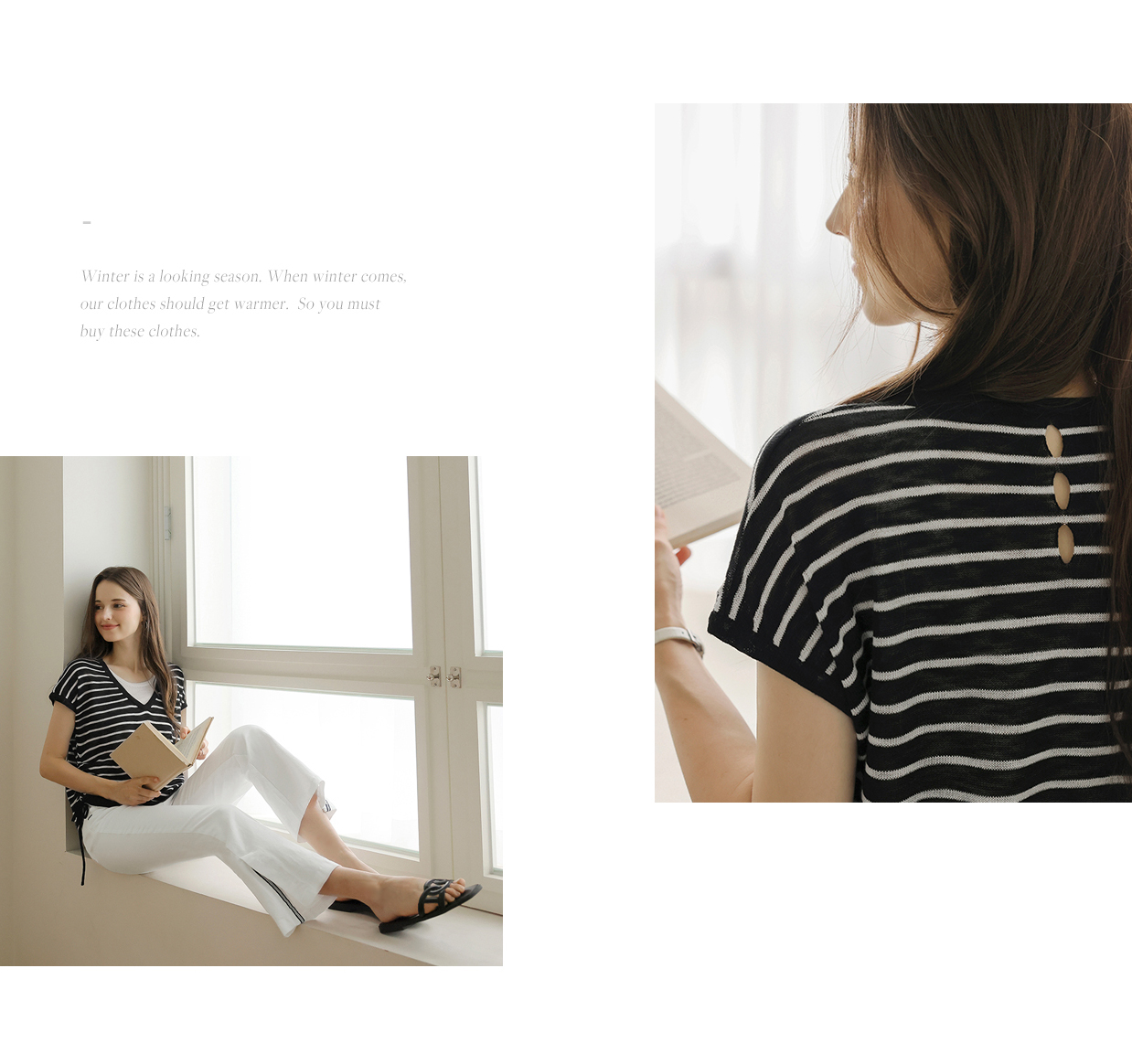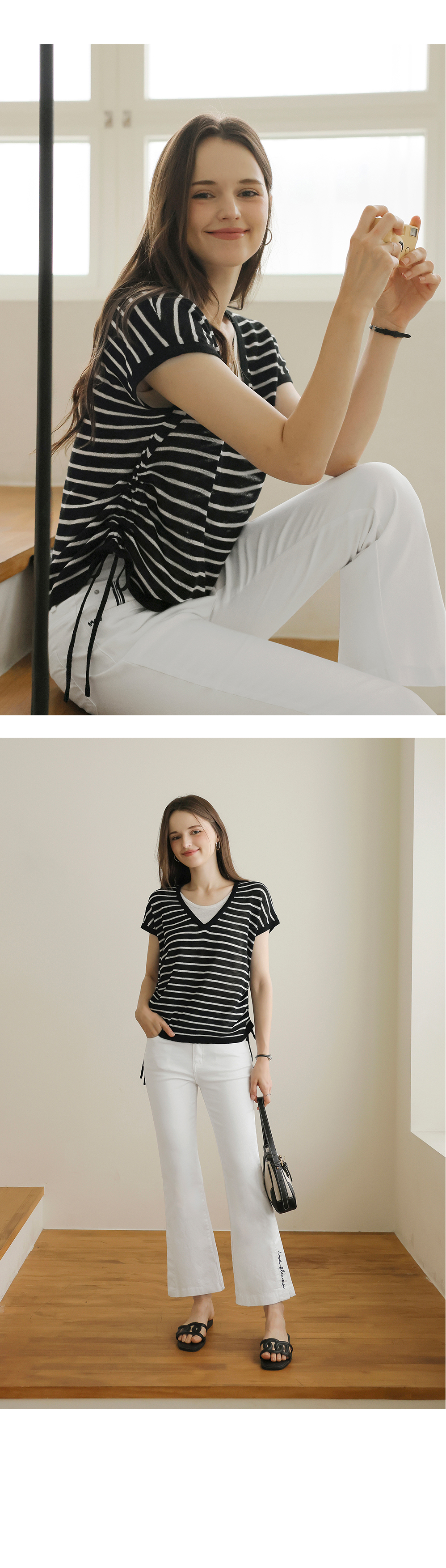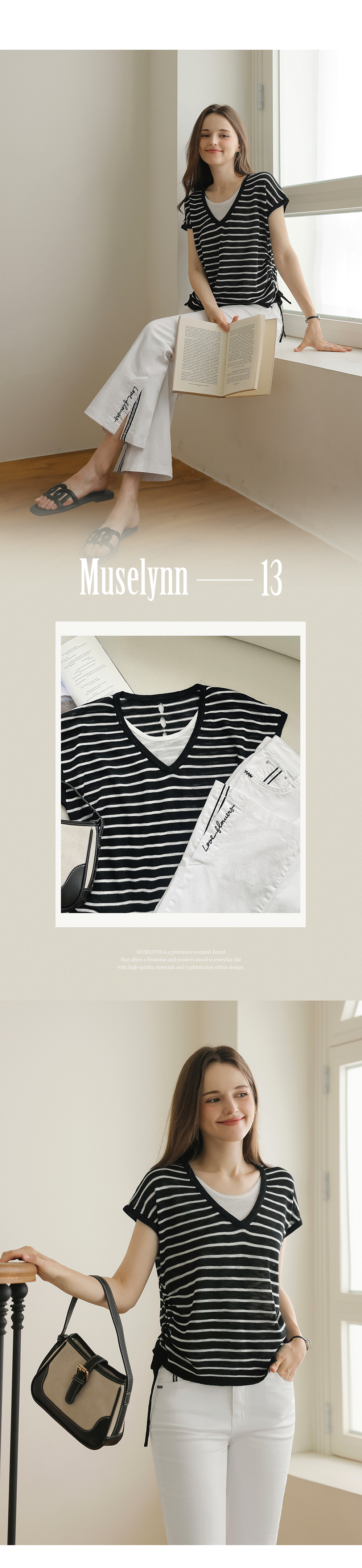 [뮤즈린] 톰즈 스트라이프 셔링 캡소매 니트