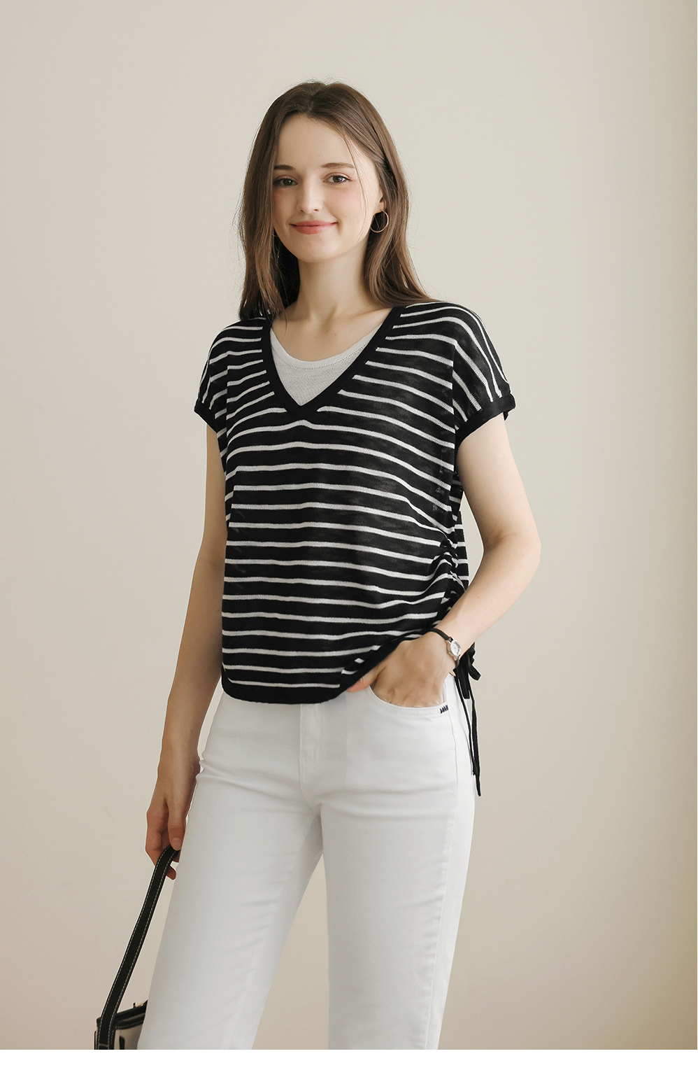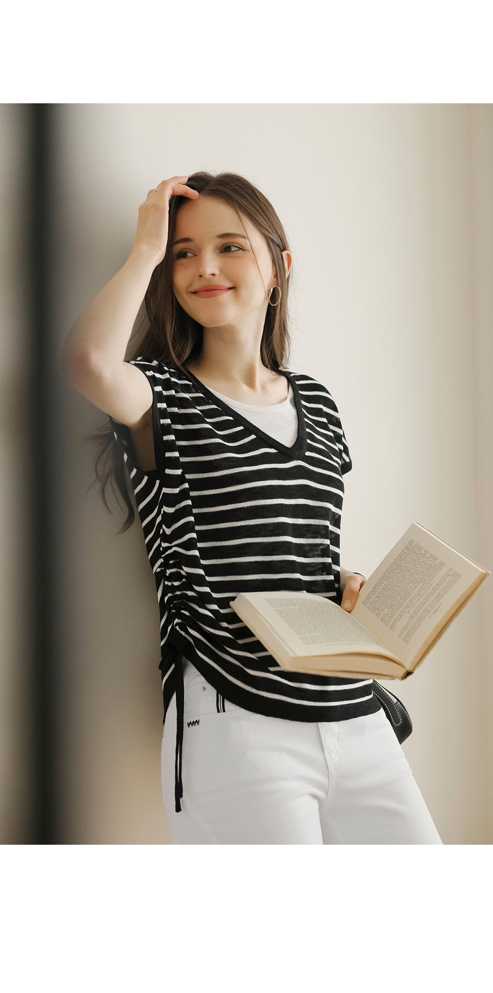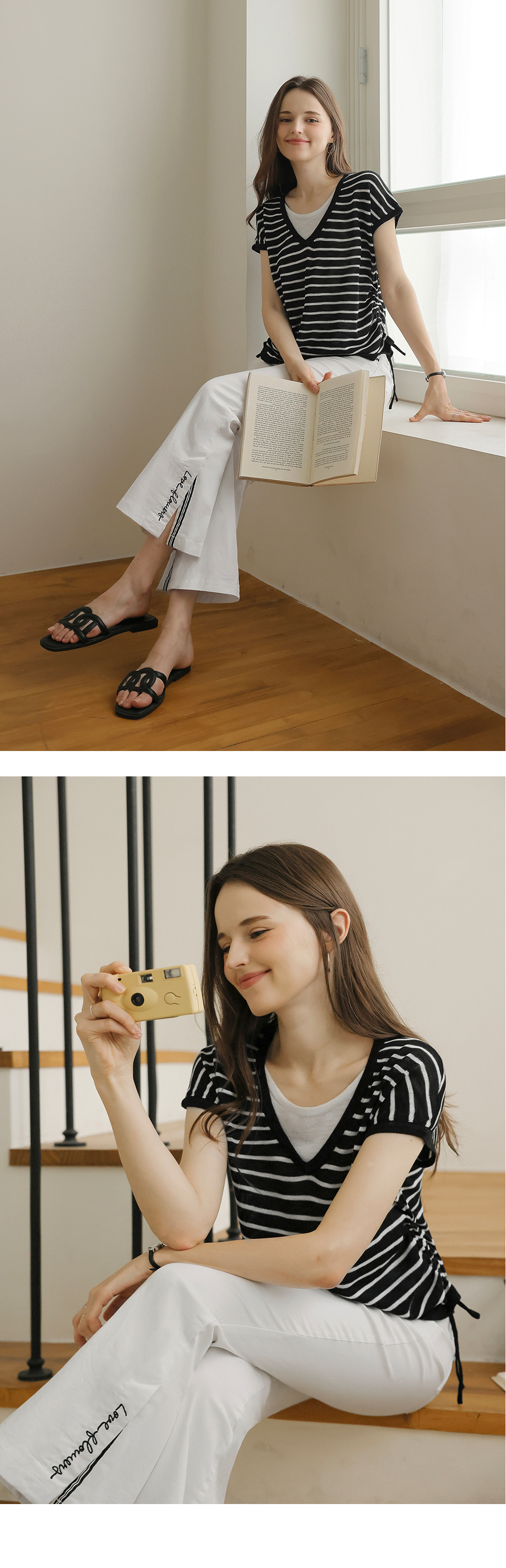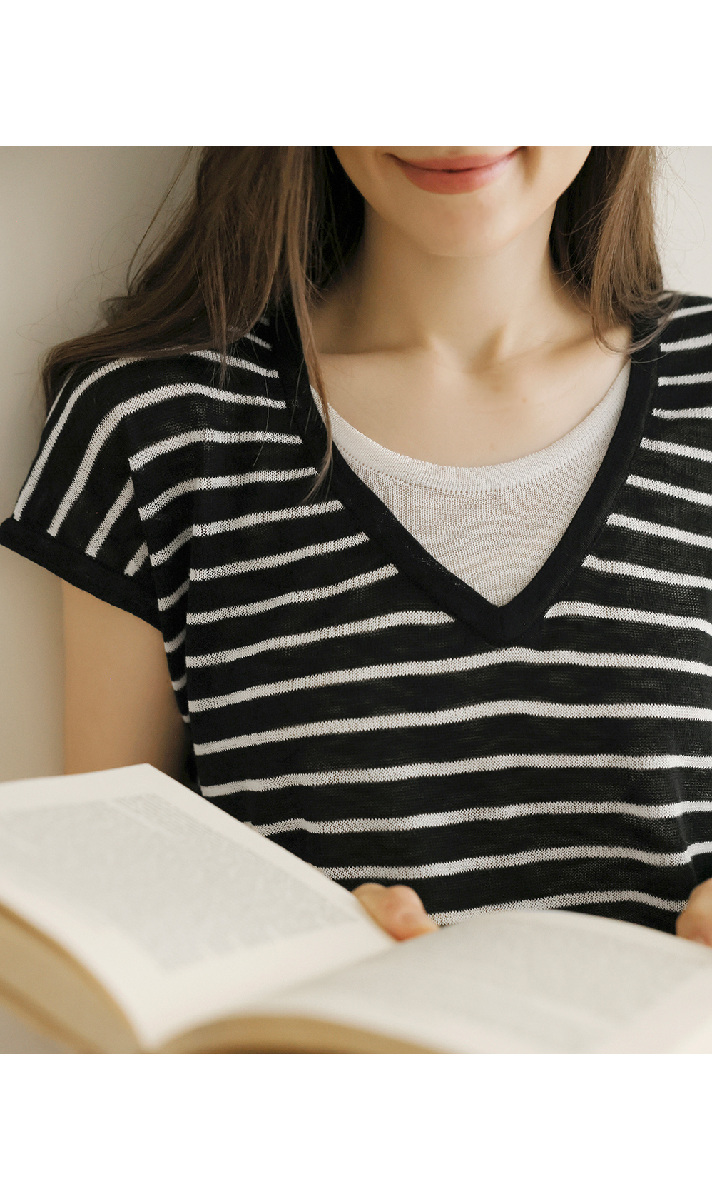 [뮤즈린] 톰즈 스트라이프 셔링 캡소매 니트