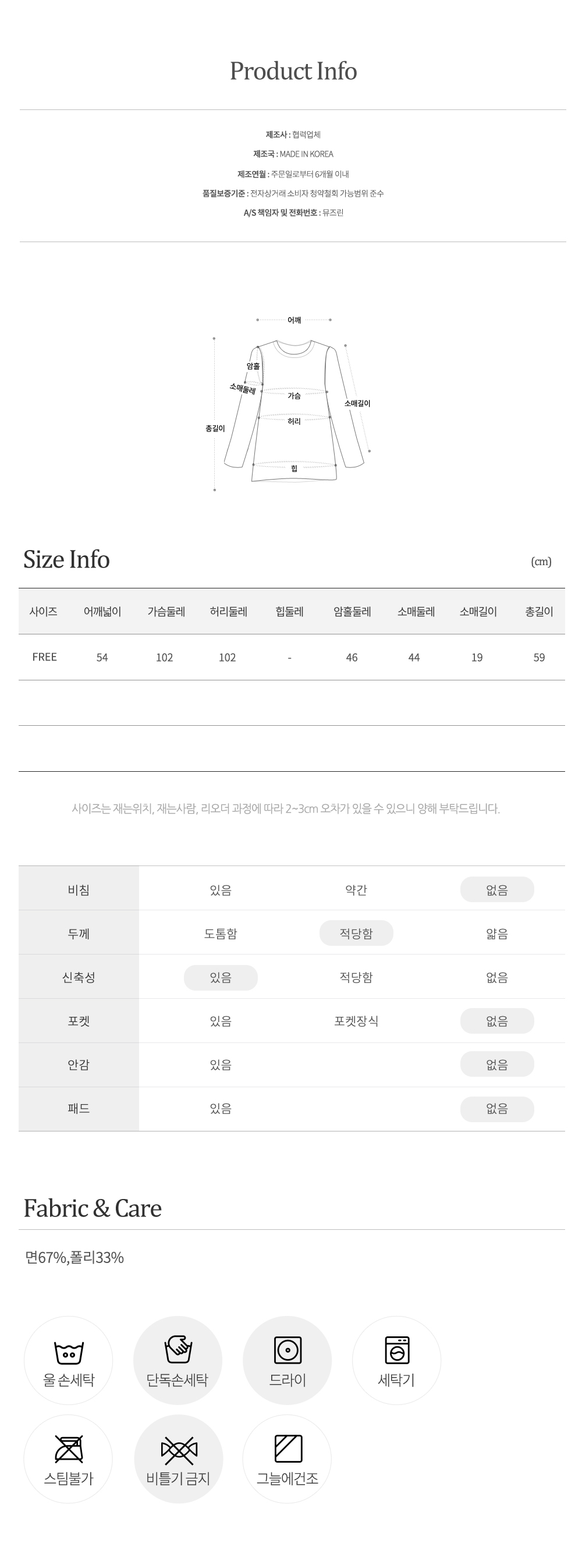 교환/반품 불가- 착용 또는 세탁한 상품