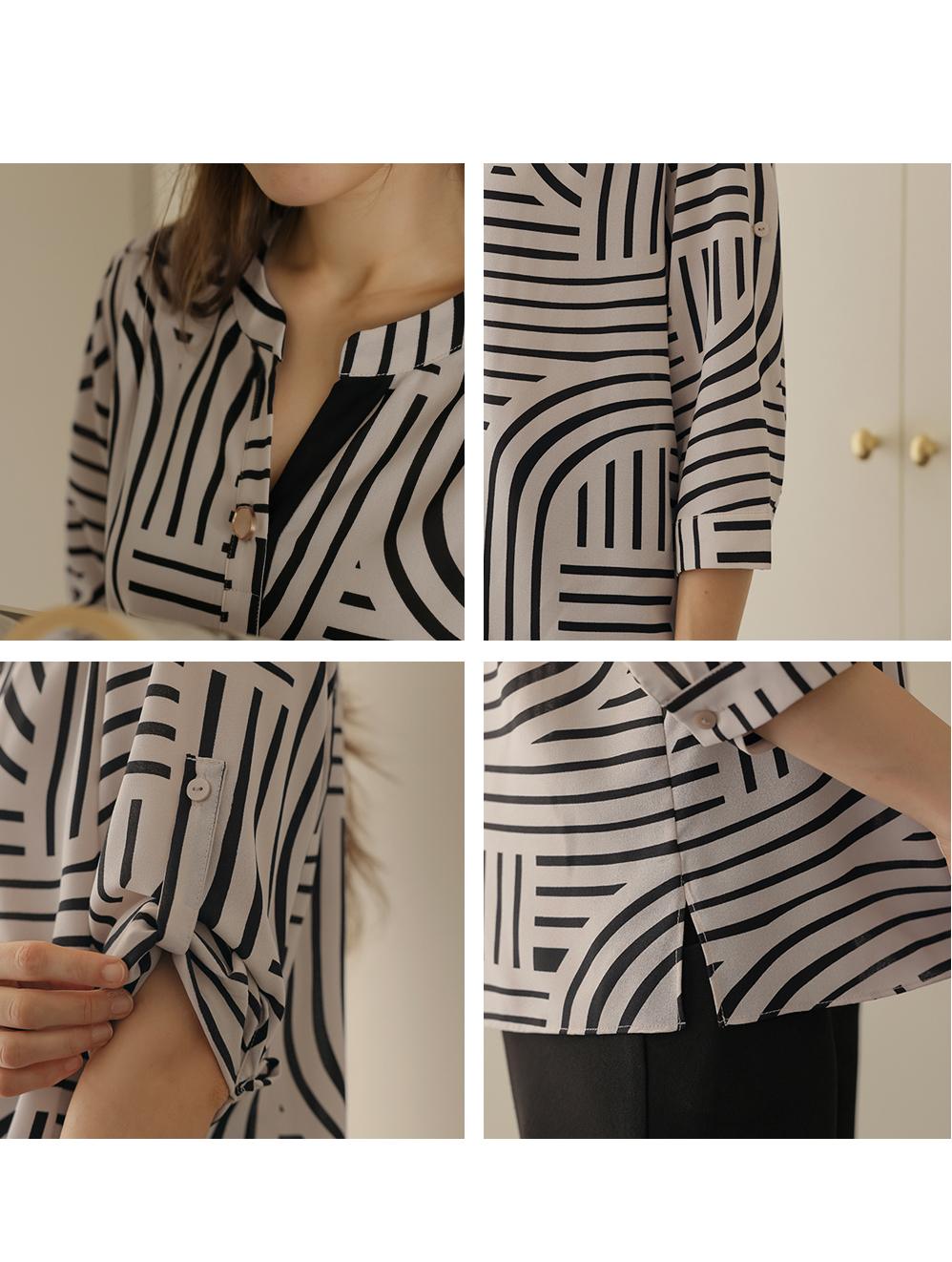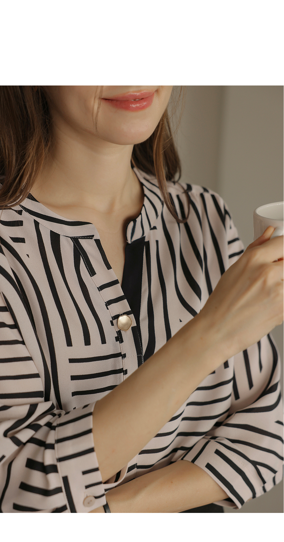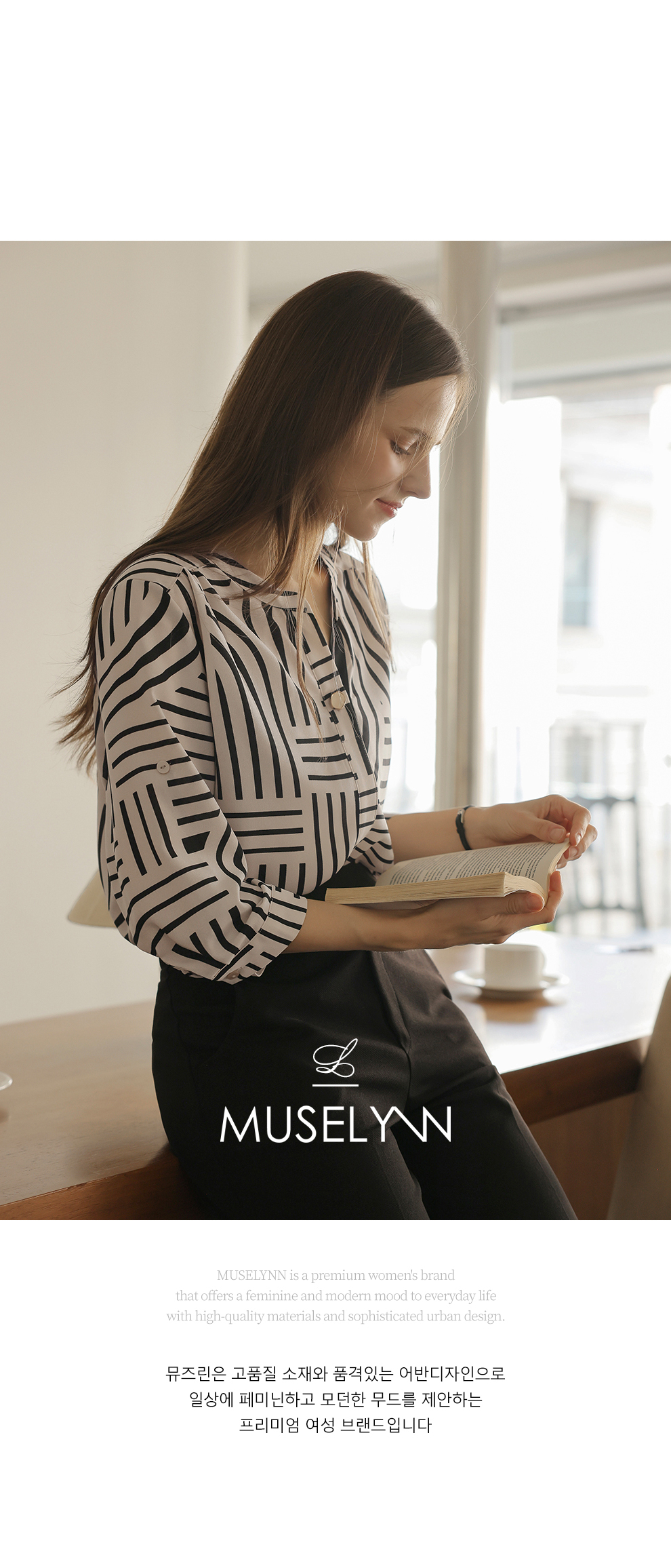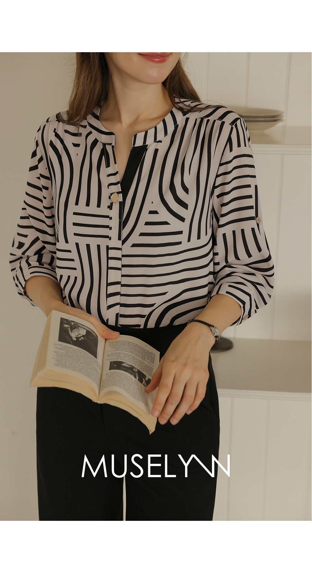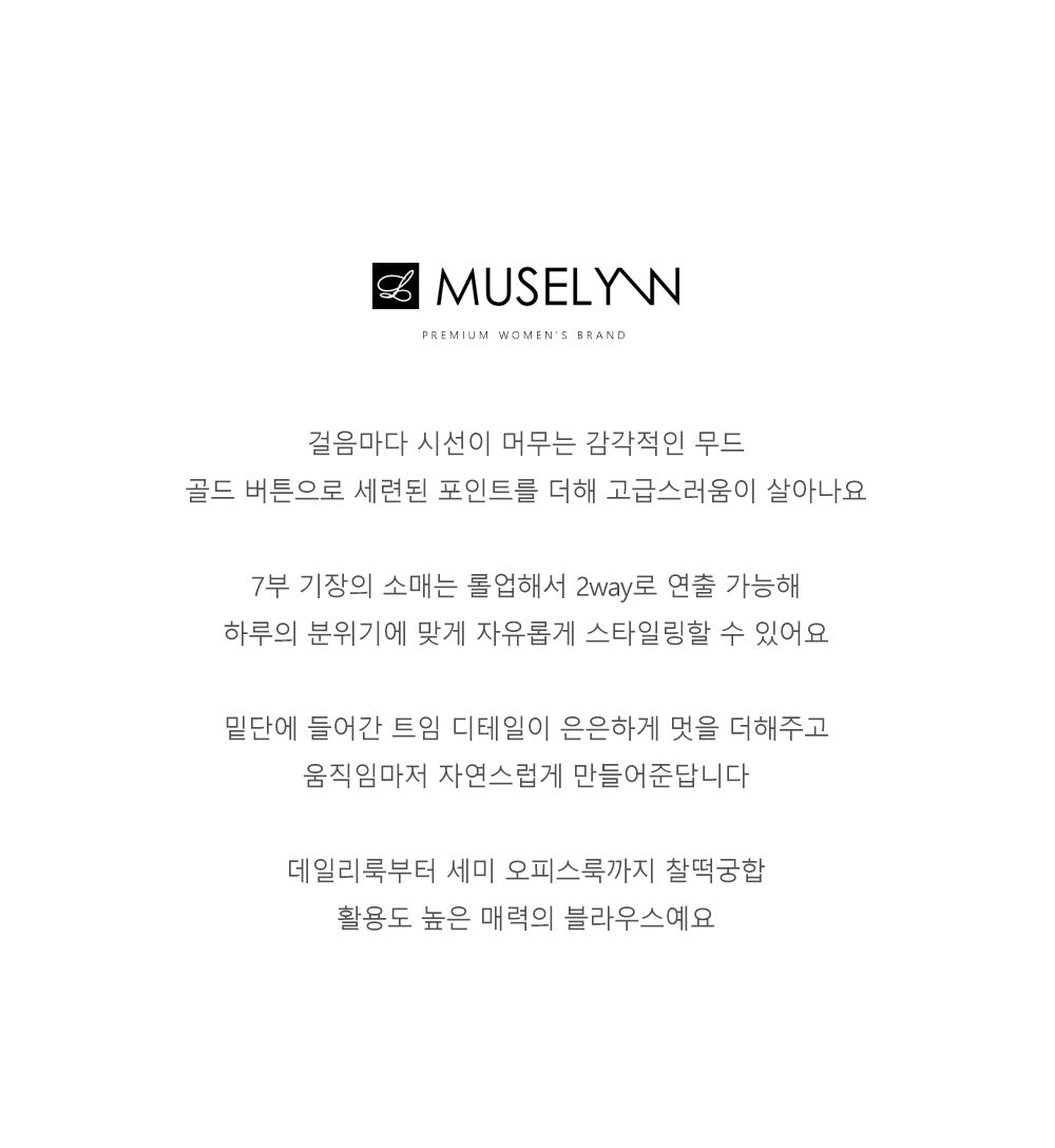 [뮤즈린] [롤업] 본스 패턴 골드버튼 쉬폰 블라우스