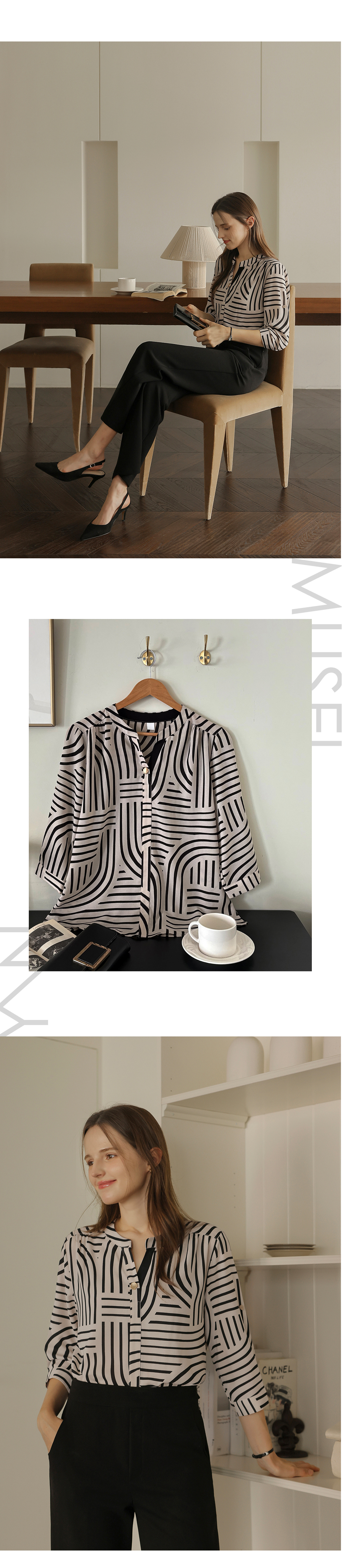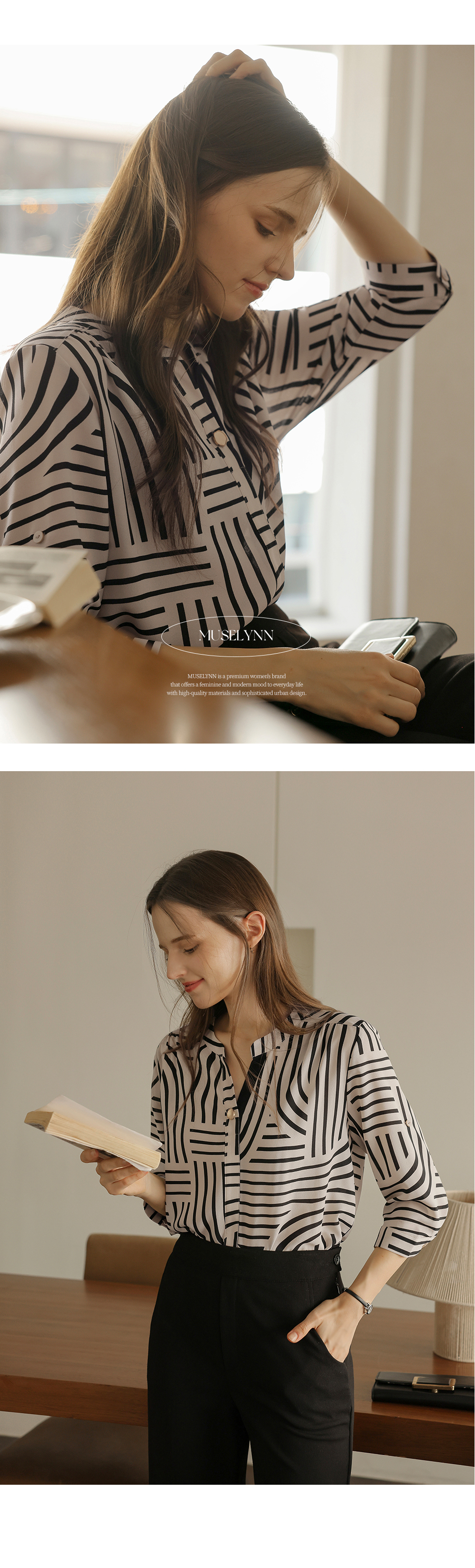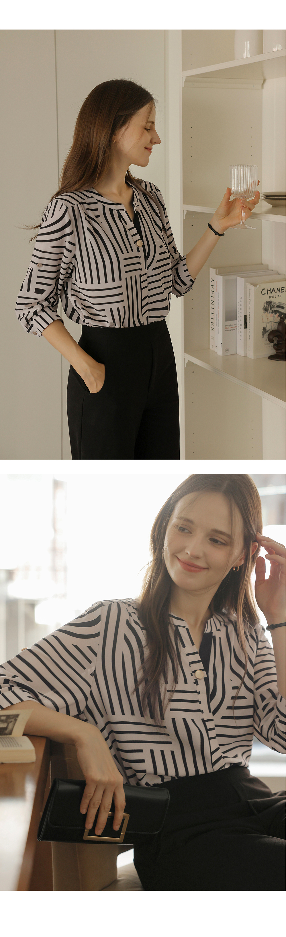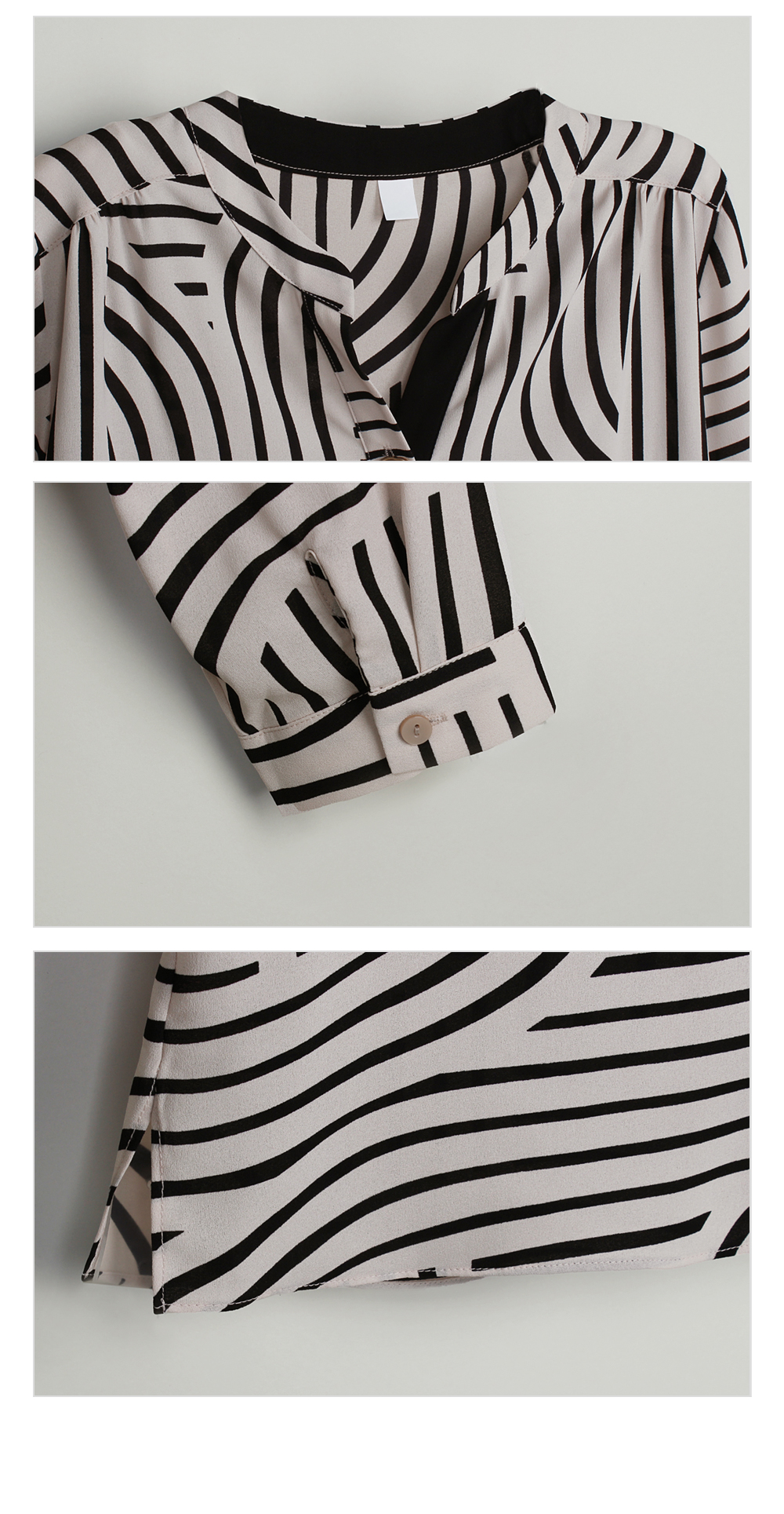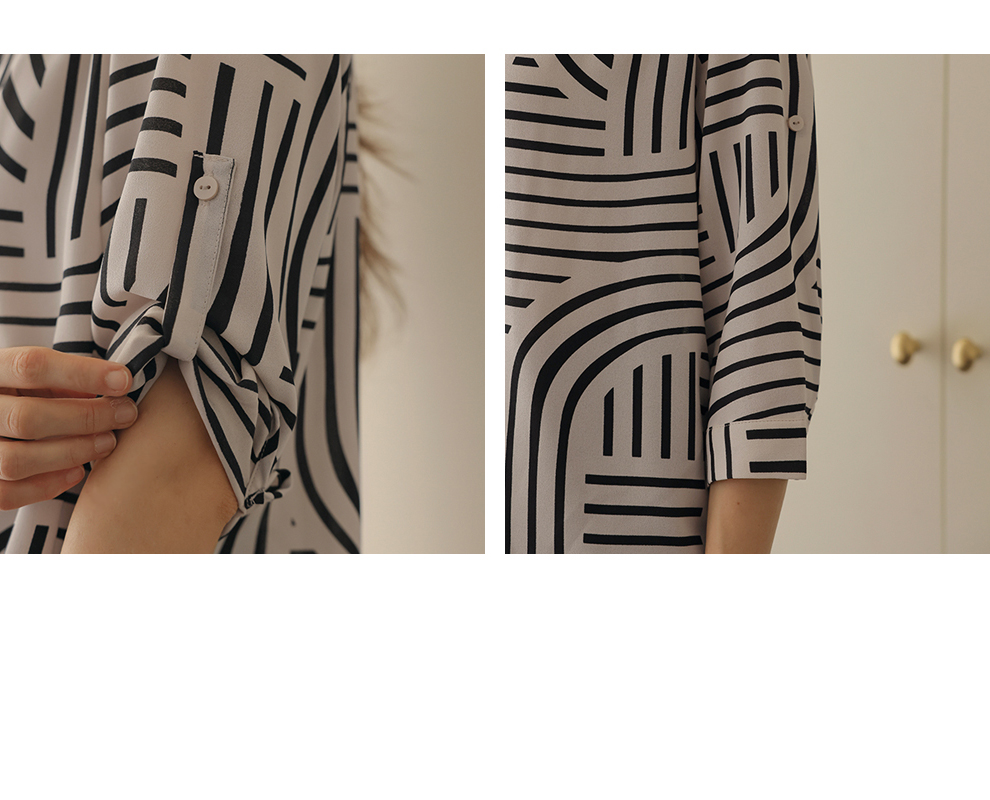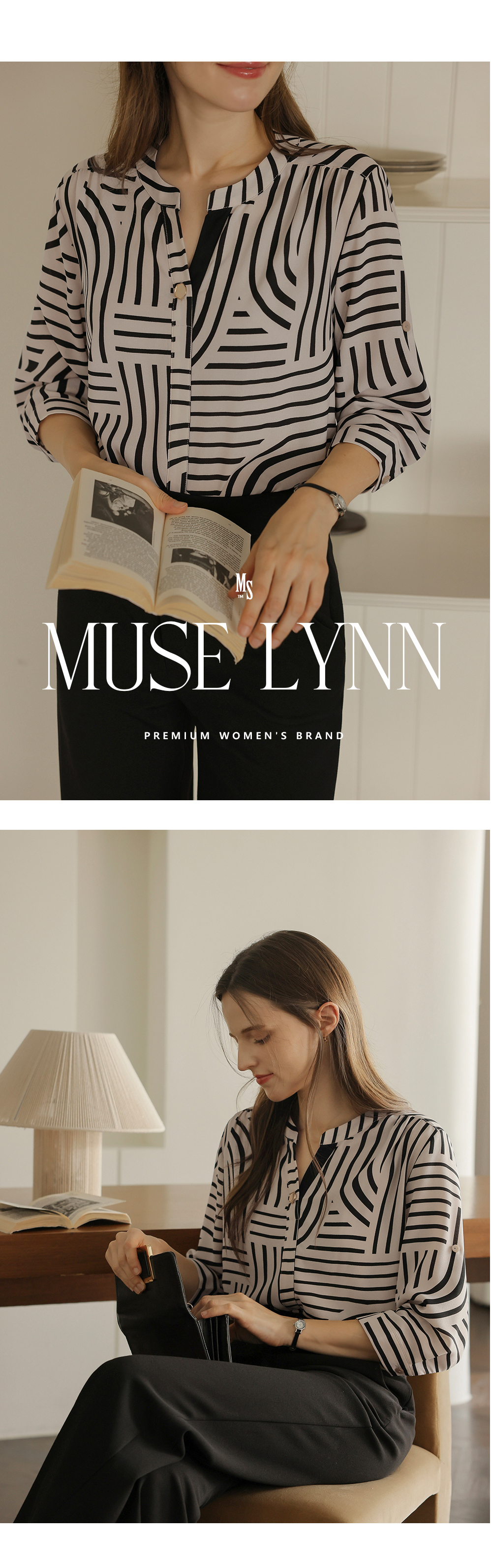 [뮤즈린] [롤업] 본스 패턴 골드버튼 쉬폰 블라우스
