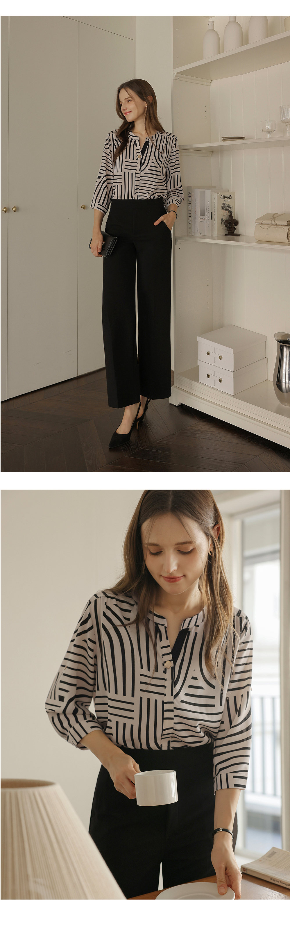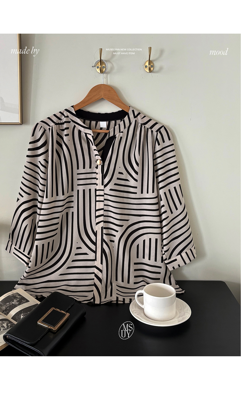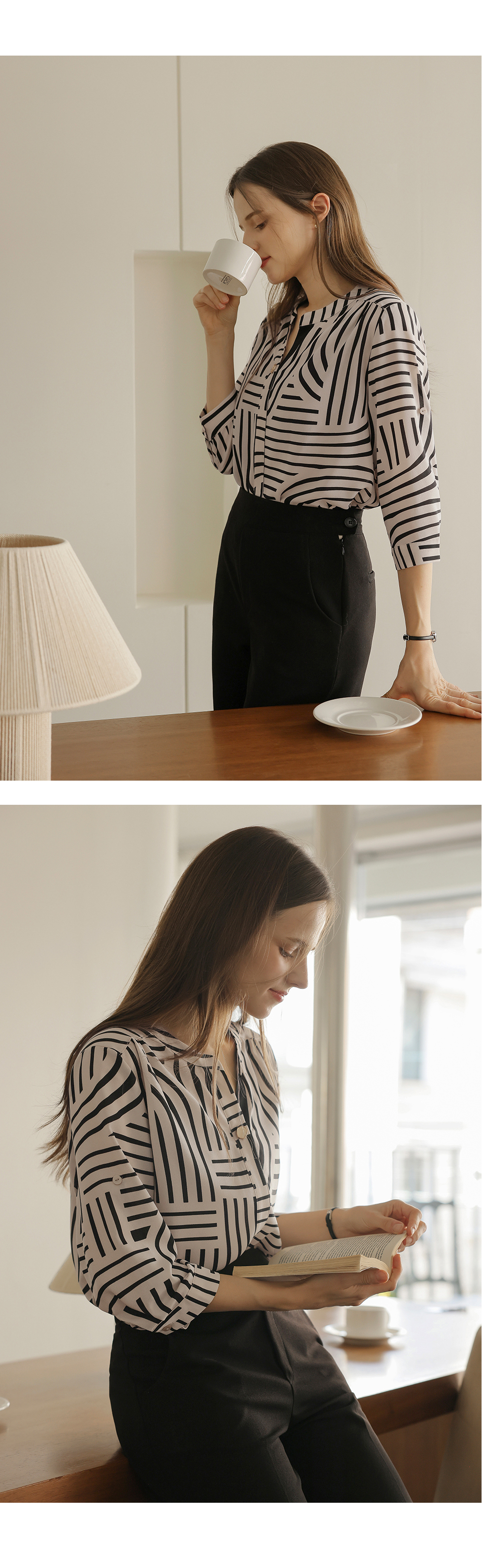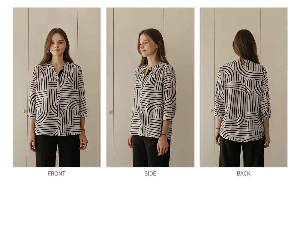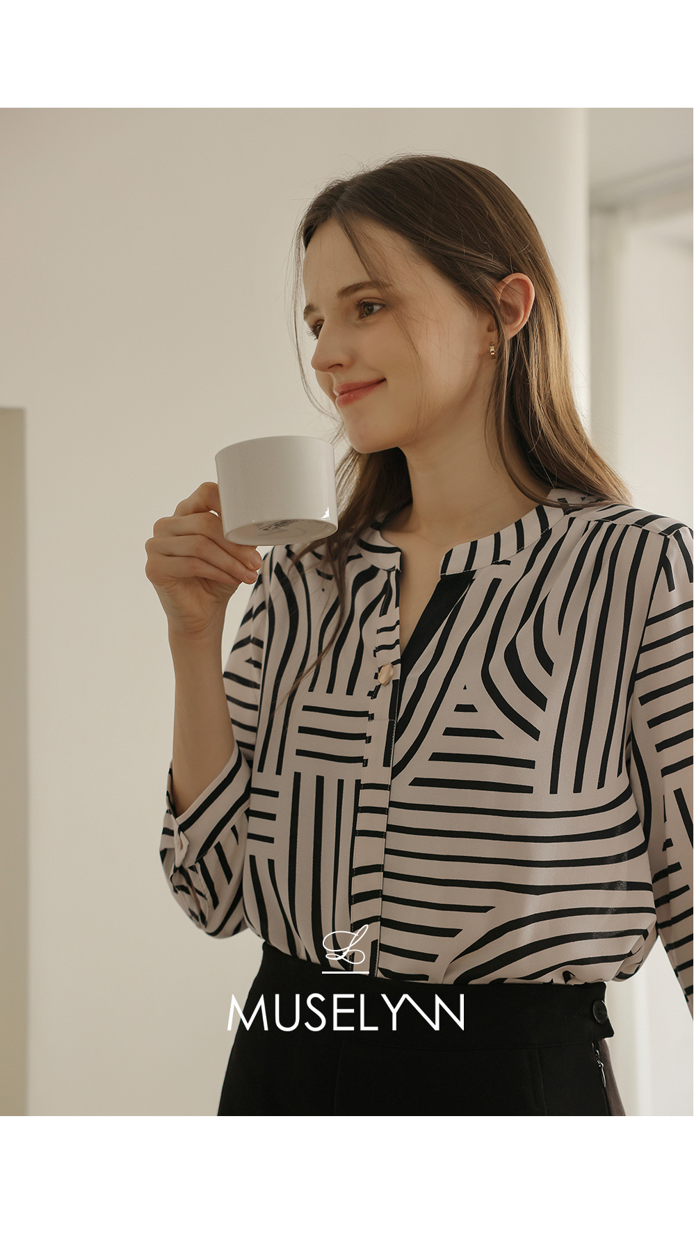 [뮤즈린] [롤업] 본스 패턴 골드버튼 쉬폰 블라우스