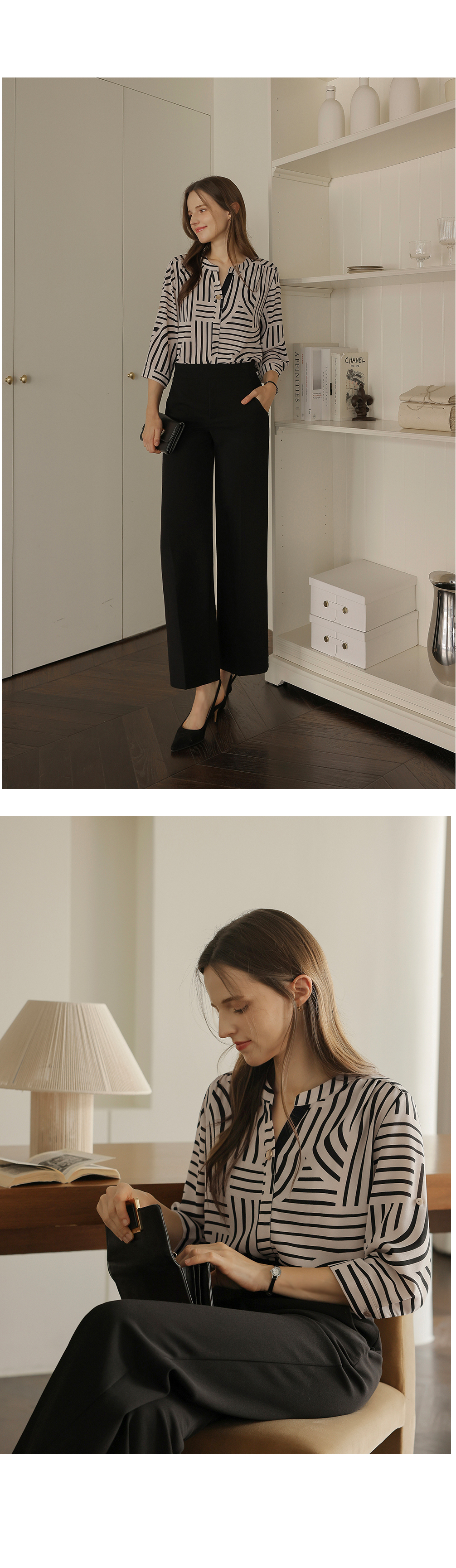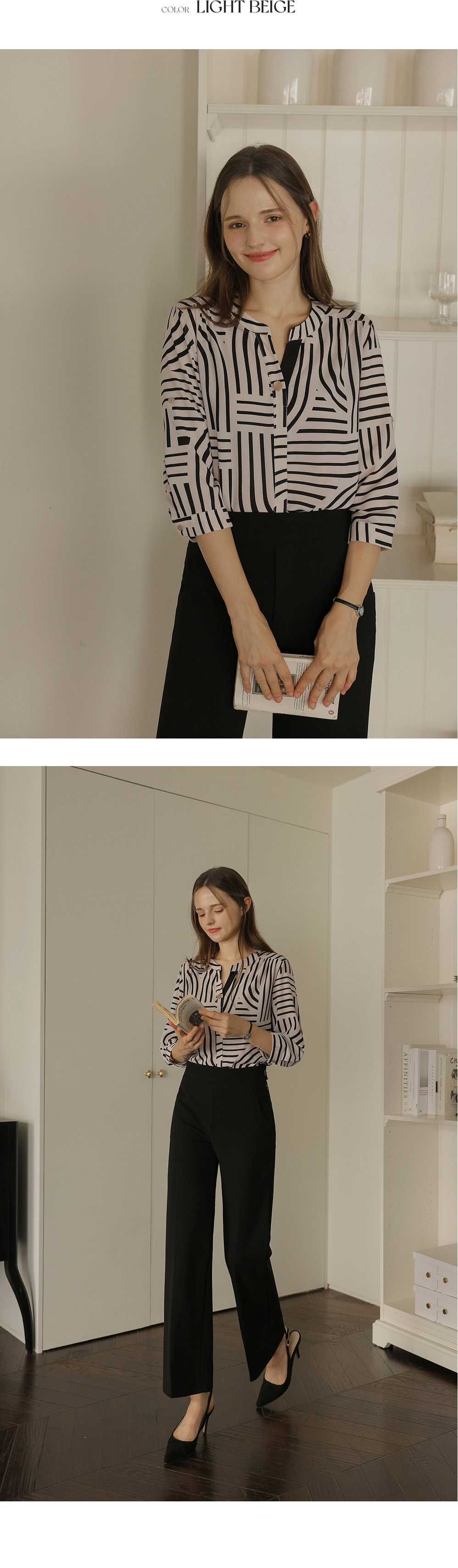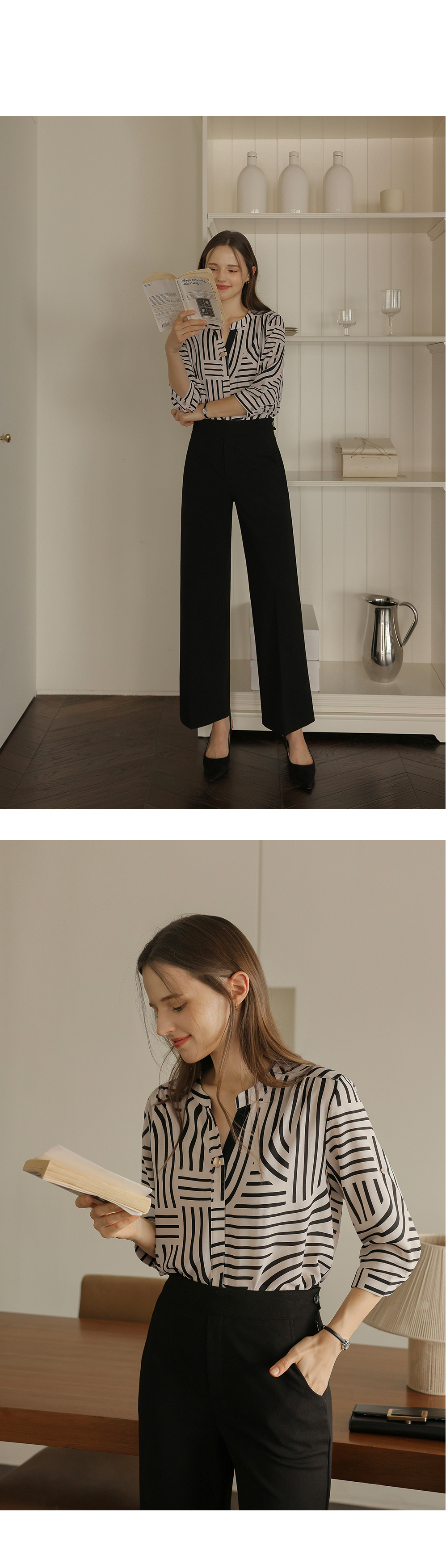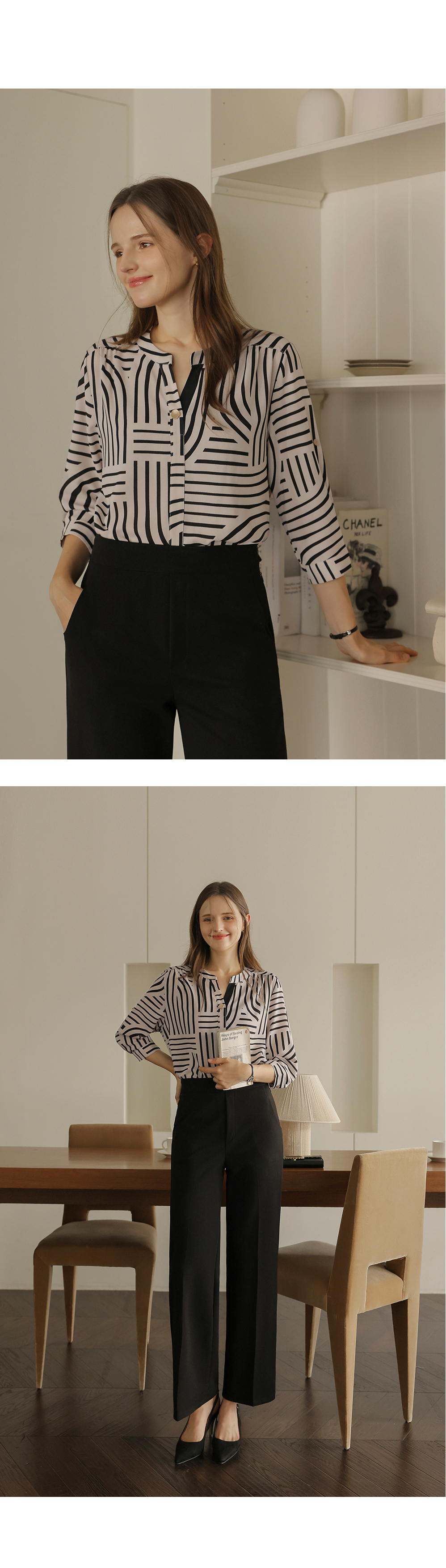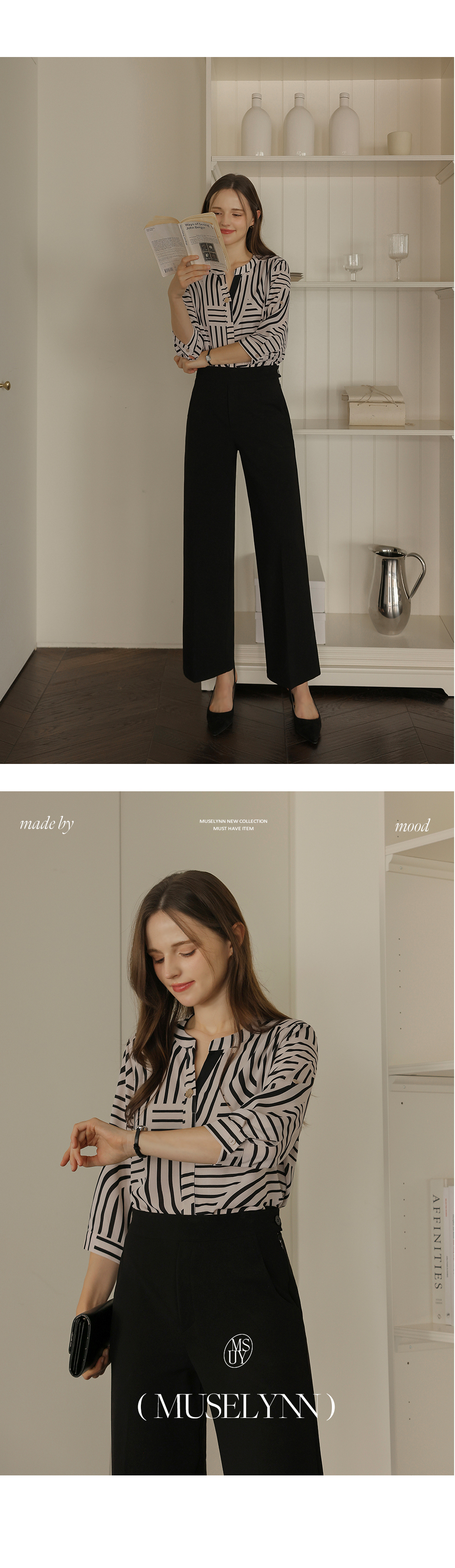 [뮤즈린] [롤업] 본스 패턴 골드버튼 쉬폰 블라우스