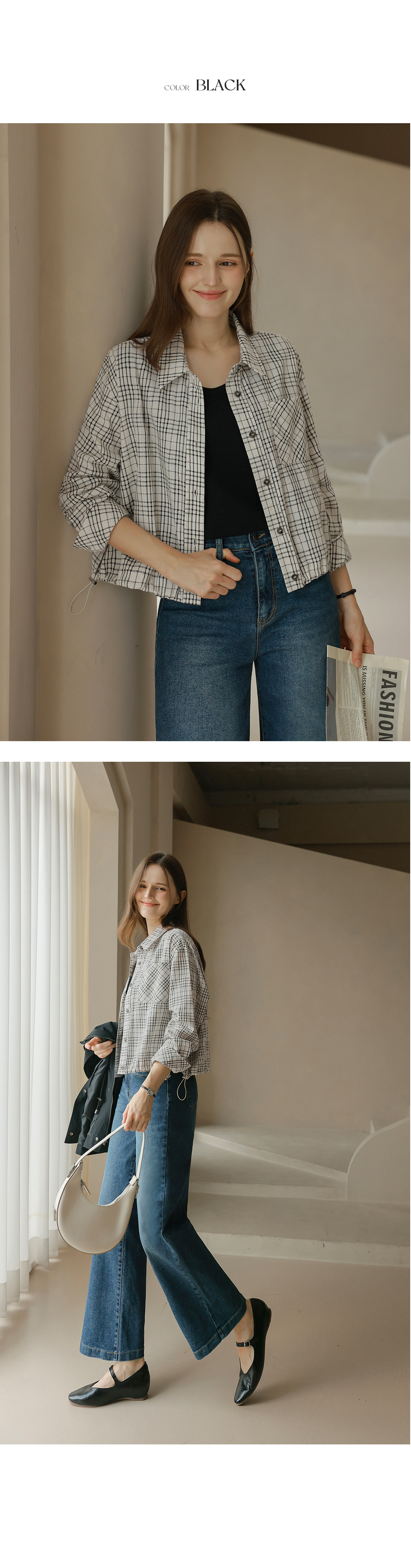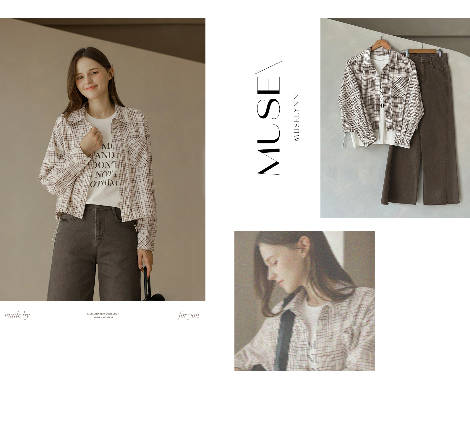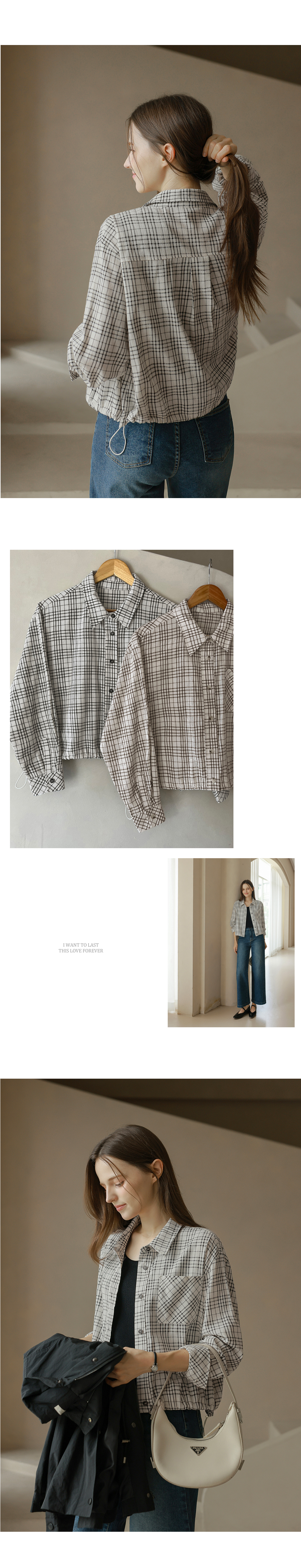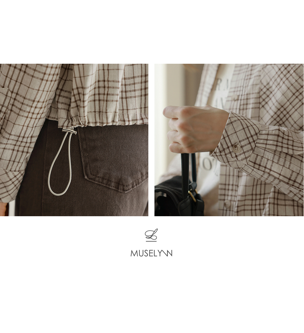 [뮤즈린] 버로우 체크 스트링 셔츠