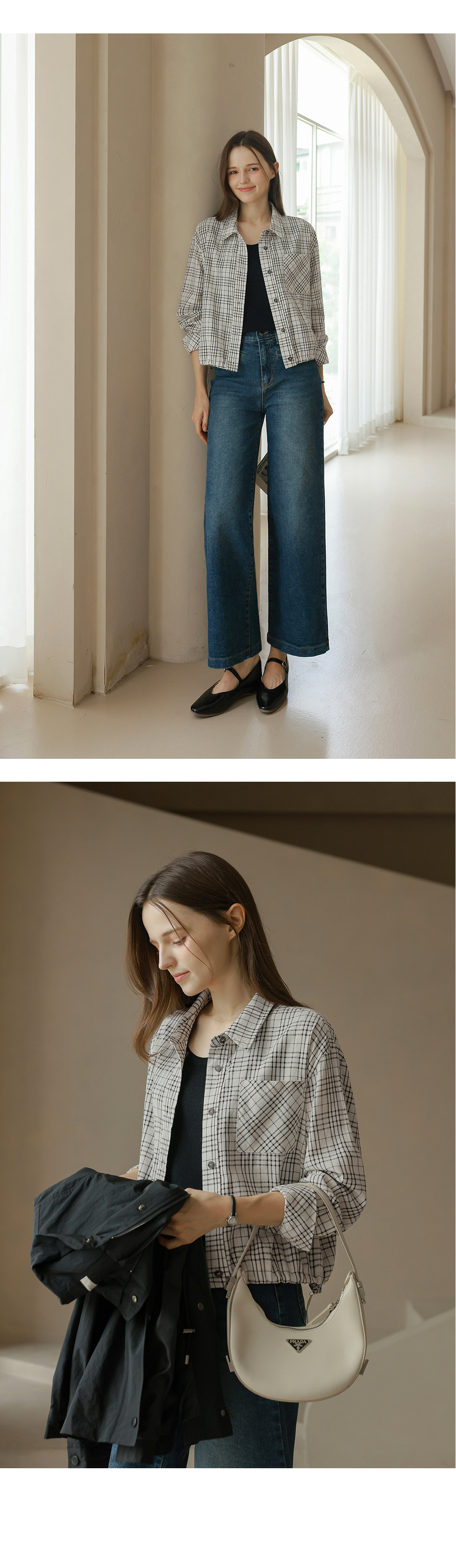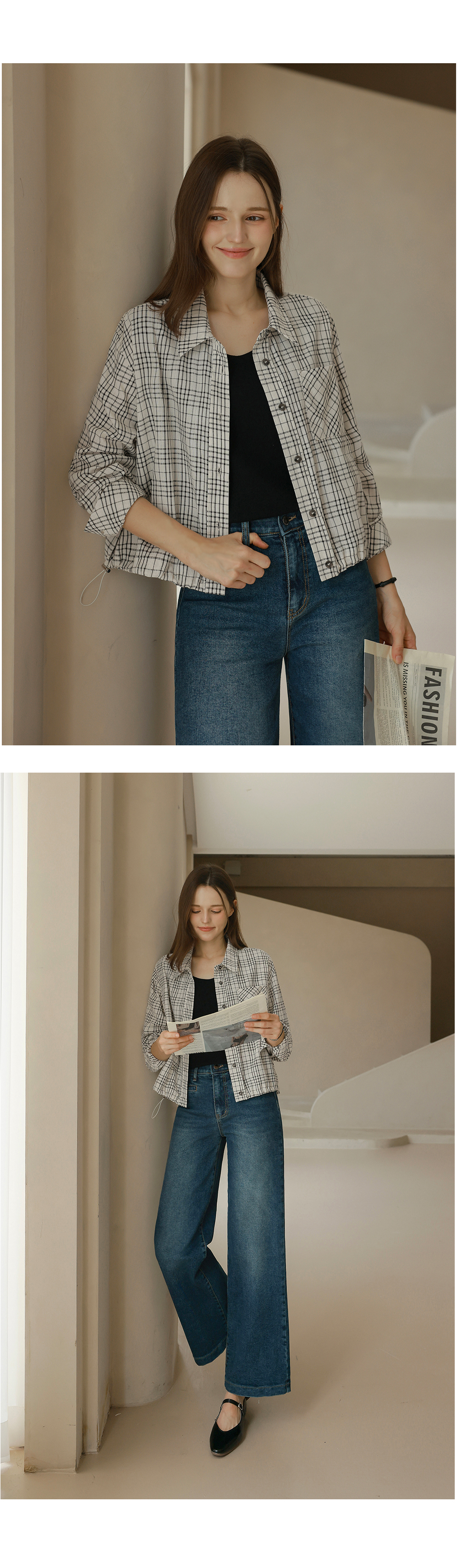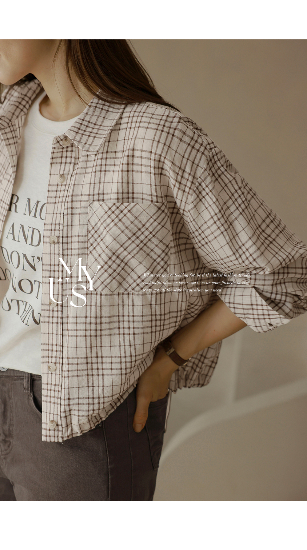 [뮤즈린] 버로우 체크 스트링 셔츠