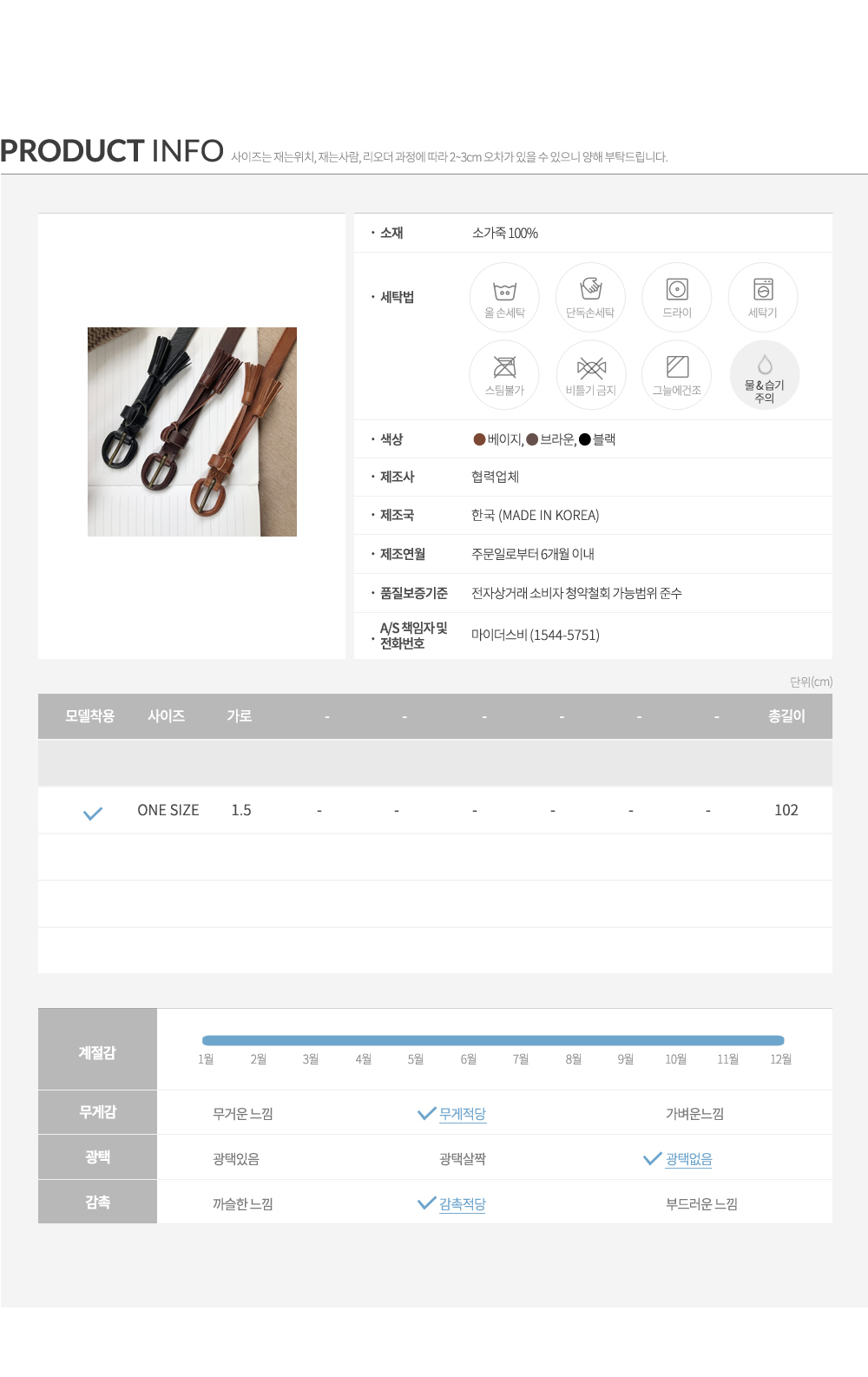 넓이나 디자인 모두 마음에 듭니다~태슬이 멋스럽고 긴 상의나 원피스에포인트가 될만한 벨트입니다~~
