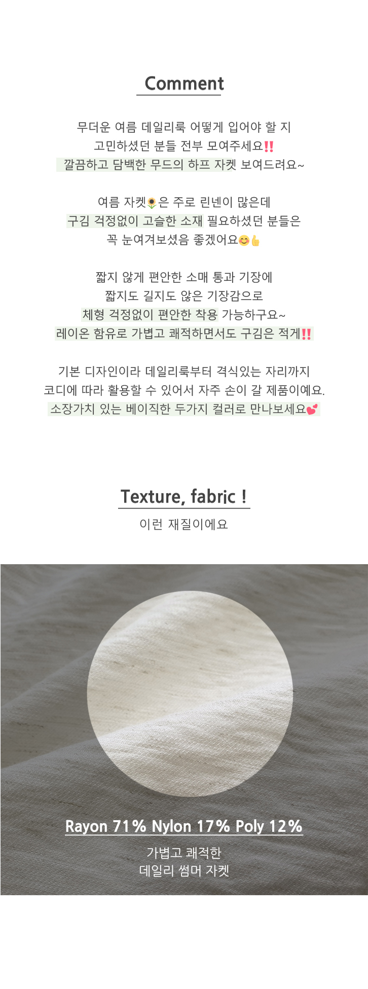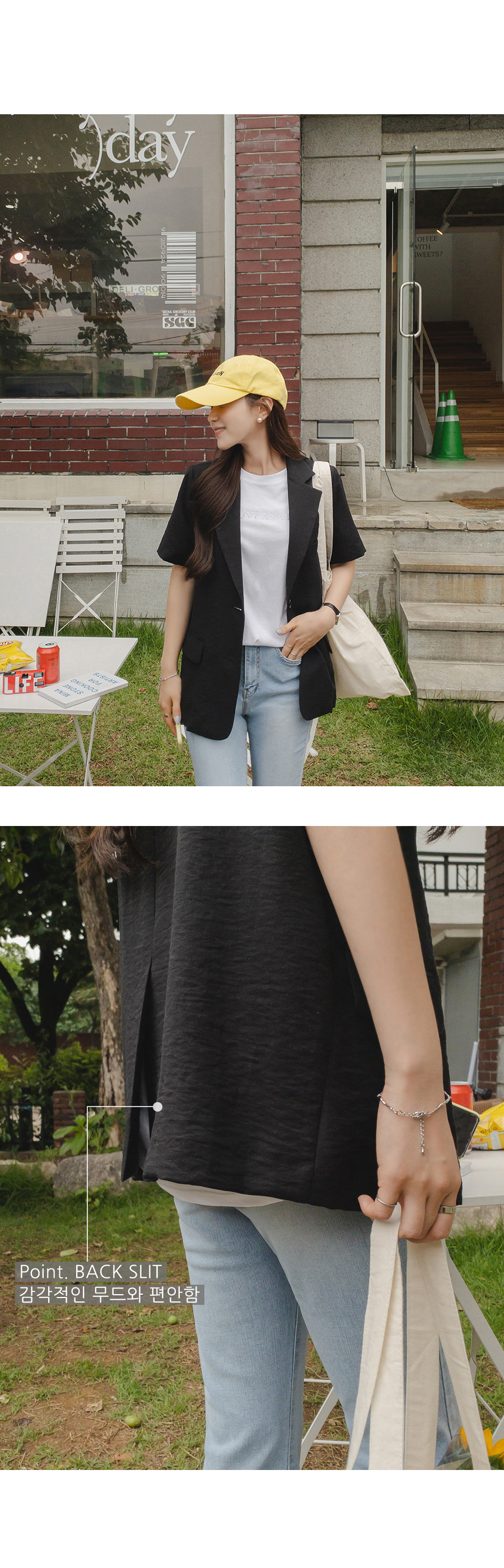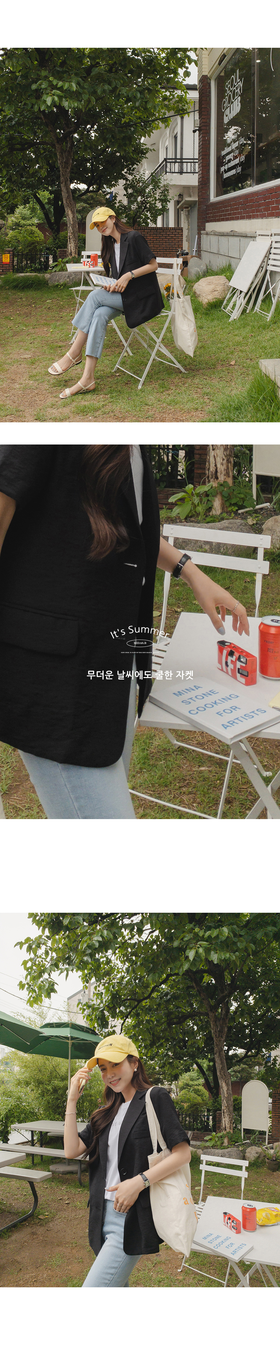 자켓이지만 반소매라서 여름에도 편하게 입을 수 있어요소재도 가볍고 시원해요