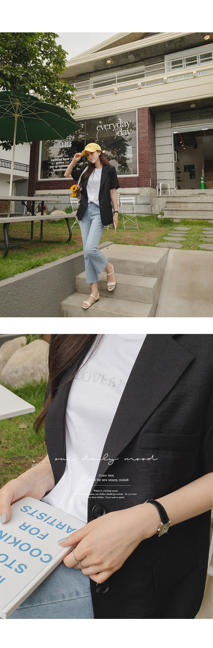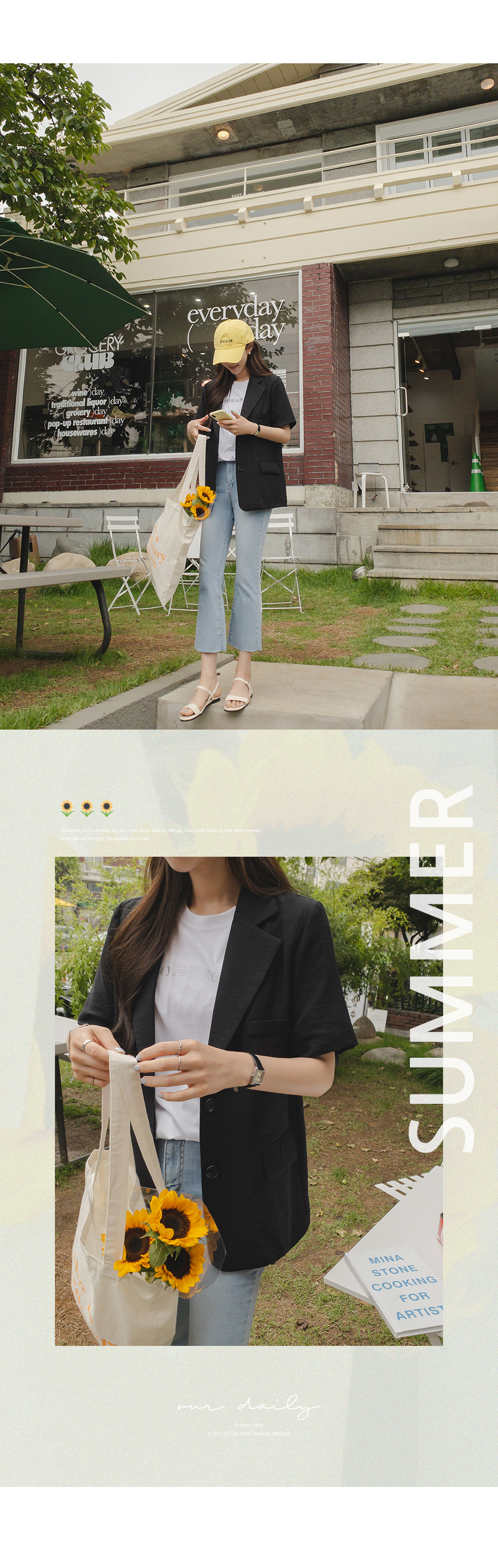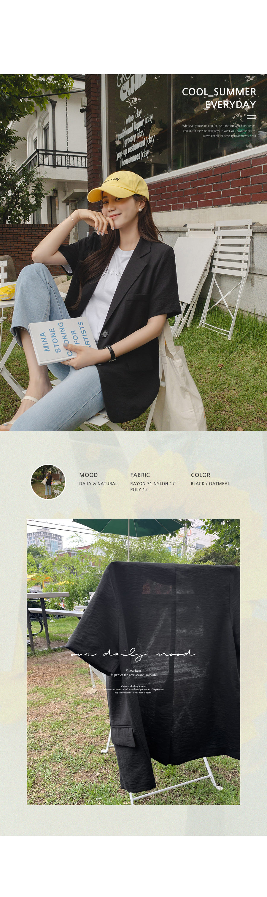 자켓이지만 반소매라서 여름에도 편하게 입을 수 있어요소재도 가볍고 시원해요