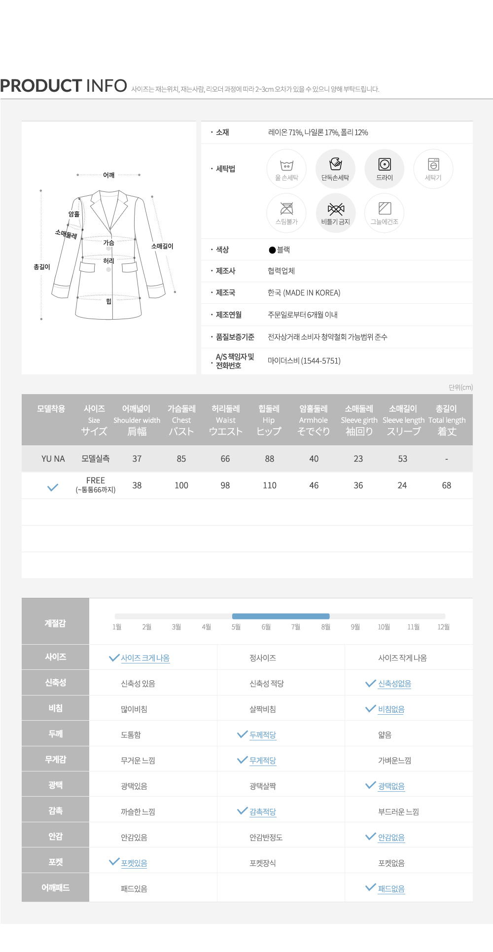 괜찮아요~ 정장같으면서도 캐주얼해서 좋습니다. 바지랑 입으면 더 잘어울리고요~~ 엉덩이 정도까지 내려와서 가려주니 더 좋았습니다~~